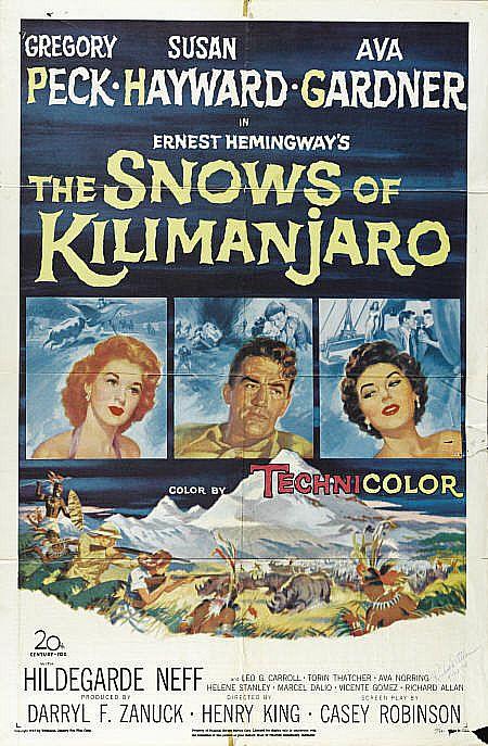 Las nieves del Kilimanjaro (1952) fue candidata a dos Oscar: a la mejor dirección artística y a la mejor fotografía. Rezaban como actores principalesGregory Peck, Susan Hayward y Ava Gardner, para quien fue su segunda obra de Hemingway.
