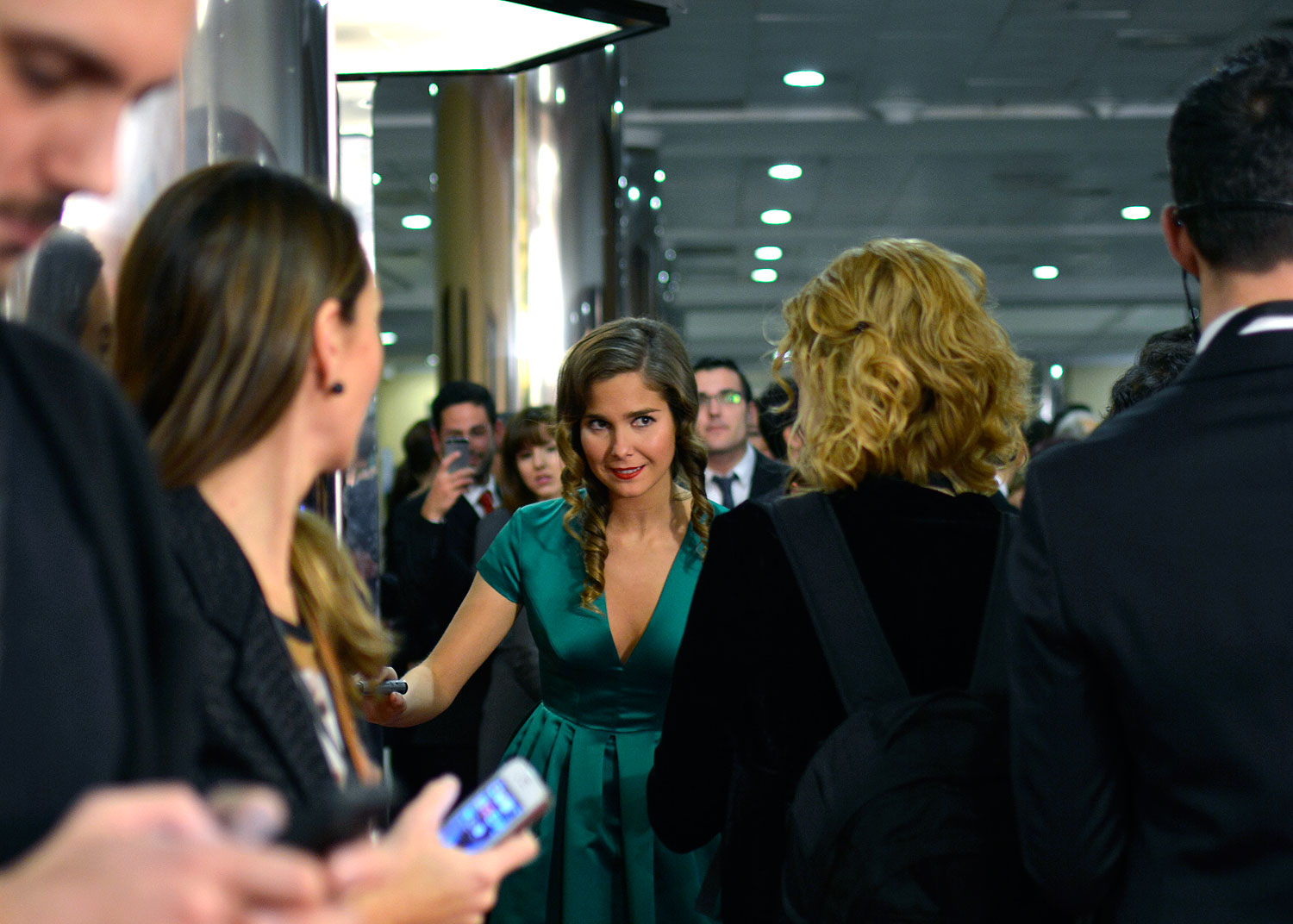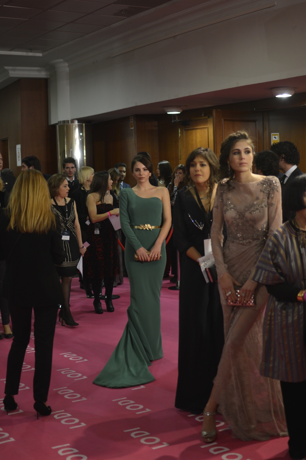 La joven actriz Natalia Sánchez, con un vestido verde espectacular, destacaba entre la gente.