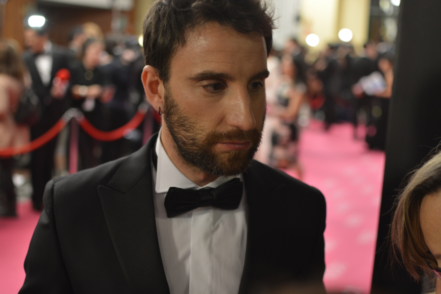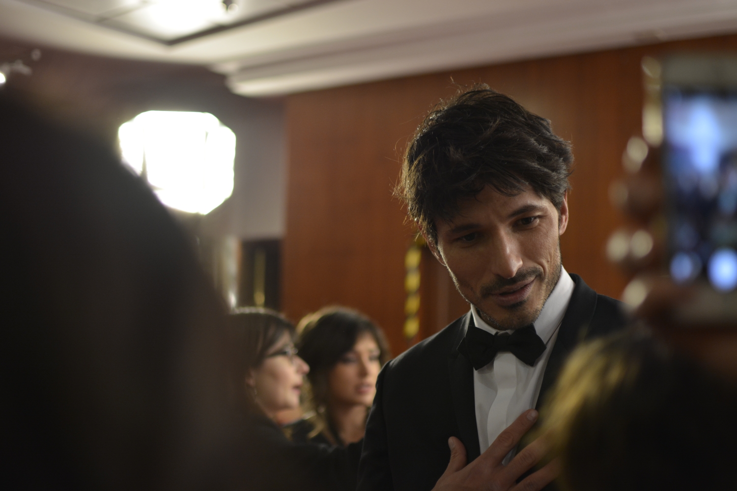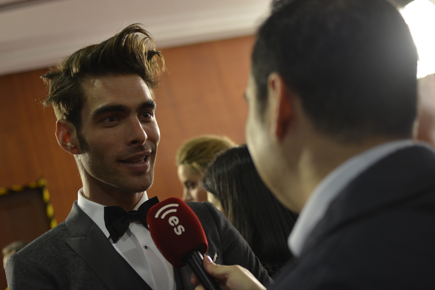 El modelo español Andrés Velencoso aparecía de entre los focos del photocall para responder a los compañeros de la prensa.