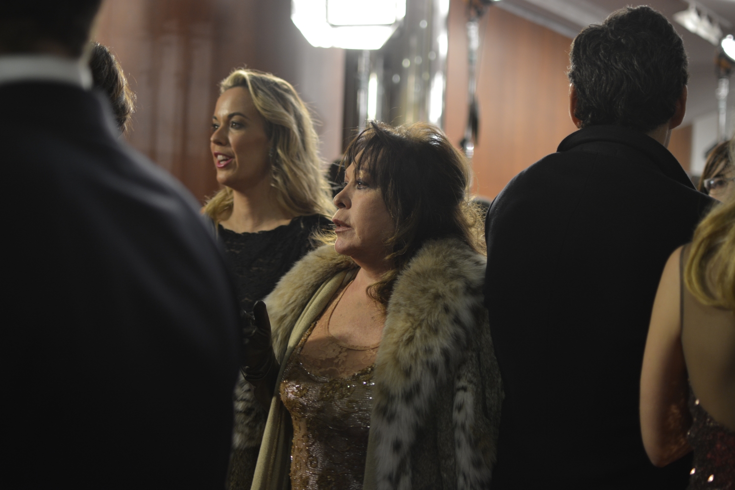 Massiel con un look abrigado de pieles apropiado para la gélida noche.