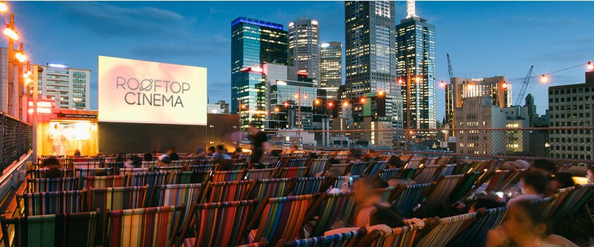 Las estrellas como techo es lo que ofrece Rooftop Cinema, situado en una azotea de Melburne, Australia. Solo abre durante los meses en las que la climatología permite disfrutar de este cine al aire libre cómodamente sentado en una butaca de playa. Además, se disfruta de unas maravillosas vistas de los rascacielos de la ciudad.