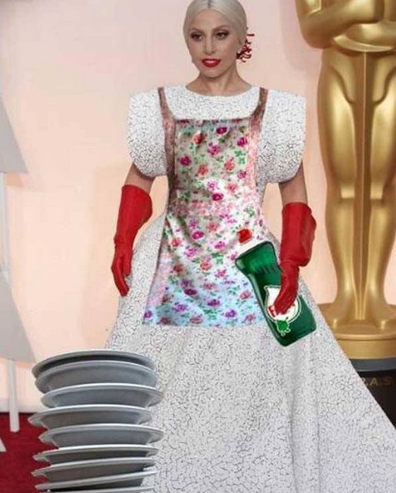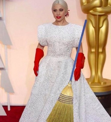 Para los internautas, el mejor complemento que podía llevar Lady Gaga con sus guantes rojos era una escoba.