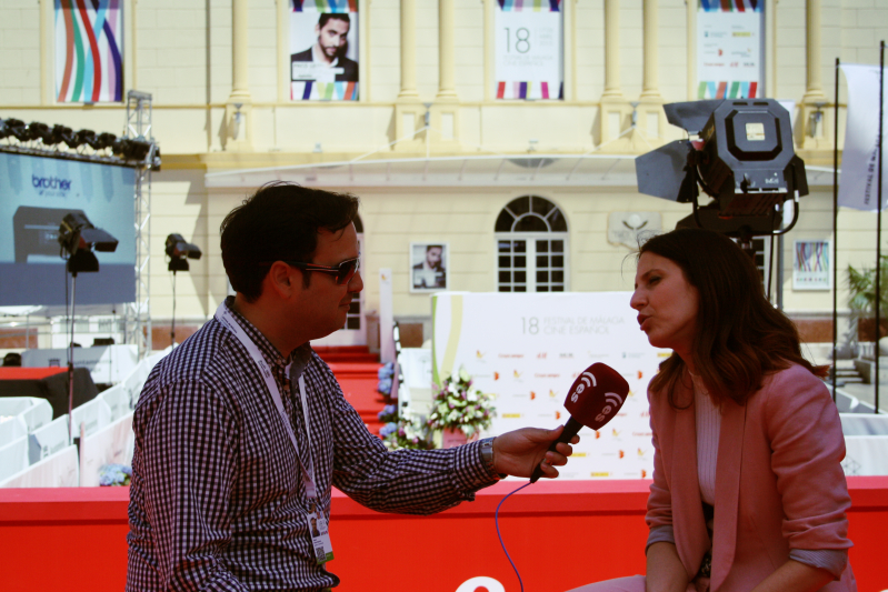 Sergio Pérez entrevista a Manuela Moreno en la alfombra roja del Teatro Cervantes.