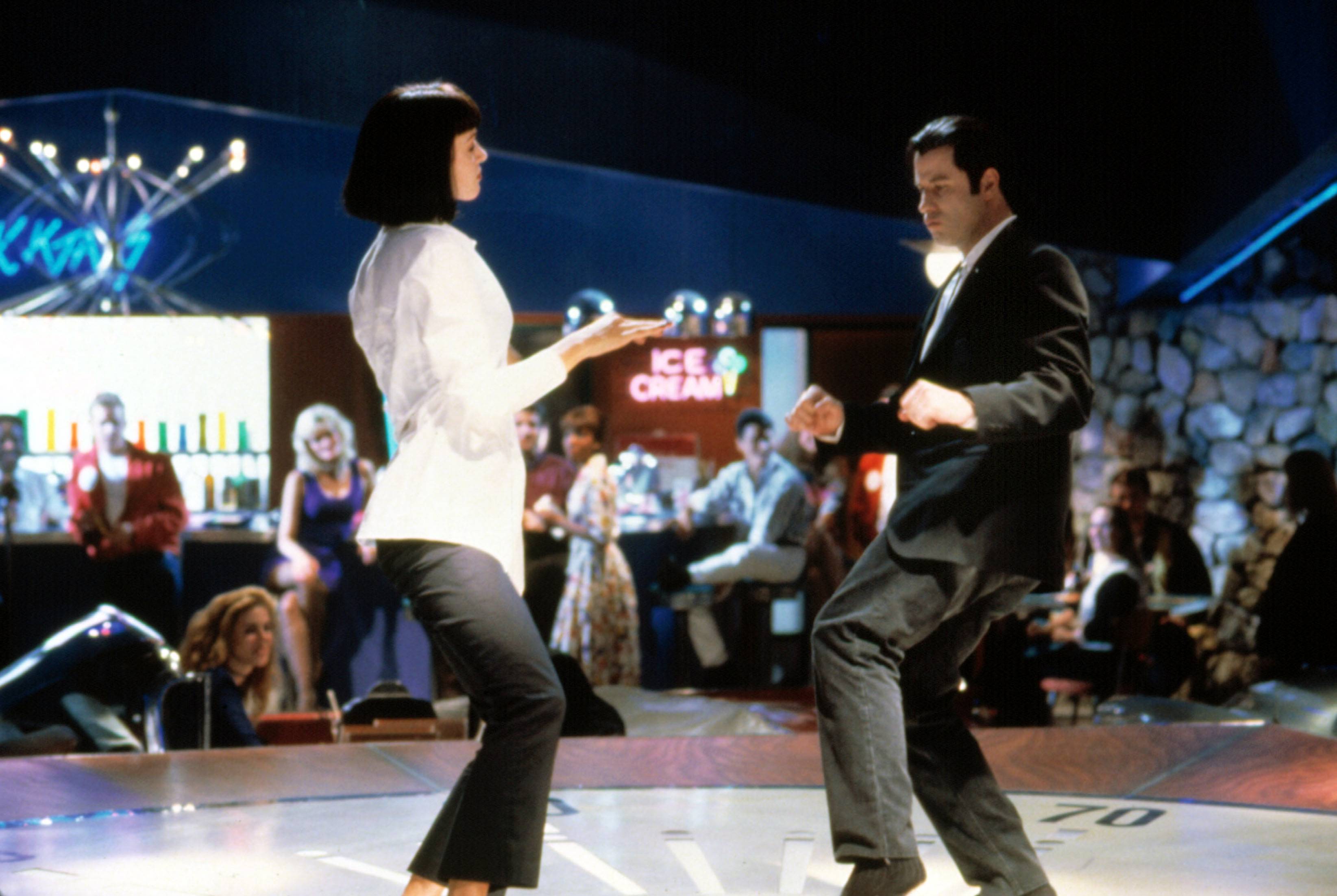 Esta es una de las escenas de Pulp Fiction más recordadas. Vincent Vega (John Travolta) debe entretener a la esposa de su jefe, Mia Wallace (Uma Thurman). "¿Bailamos?"