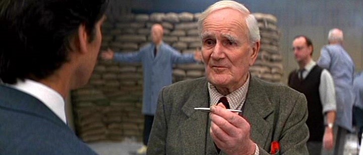 "Q", ya interpretado por John Cleese, le da a Bond un anillo de alta frecuencia capaz de romper el cristal bilndado. Bond lo utiliza en la residencia del villano Gustav Graves