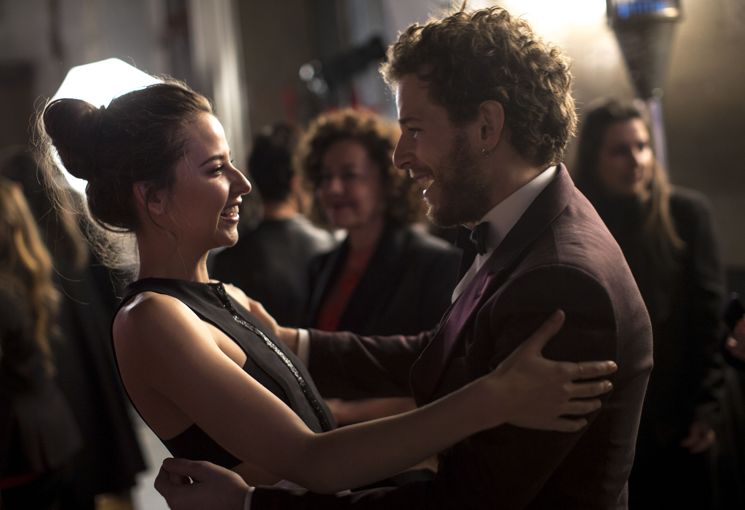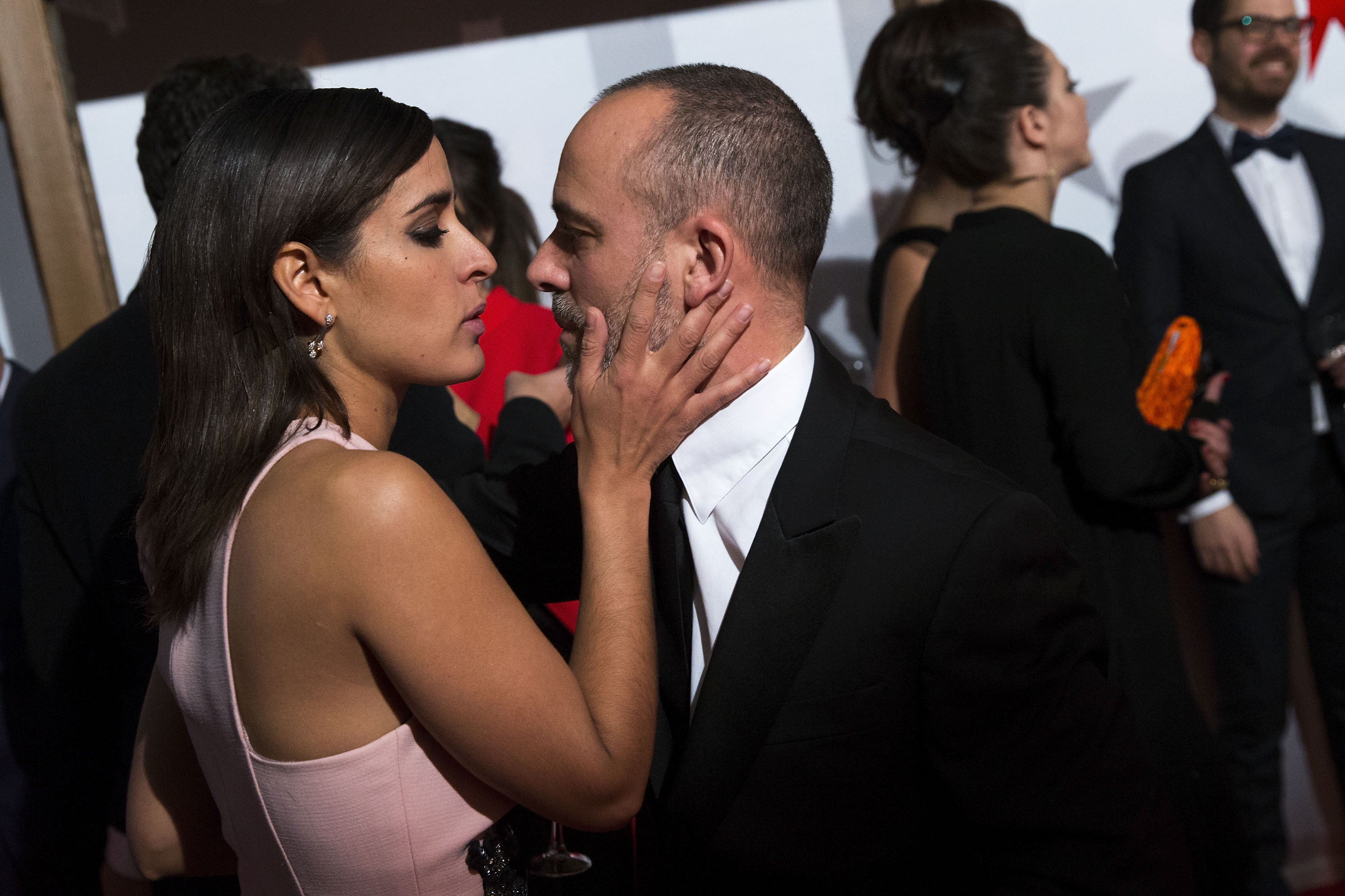 Inma Cuesta y Javier Gutiérrez se saludan antes de empezar la gala. Ambos son compañeros en Águila Roja.