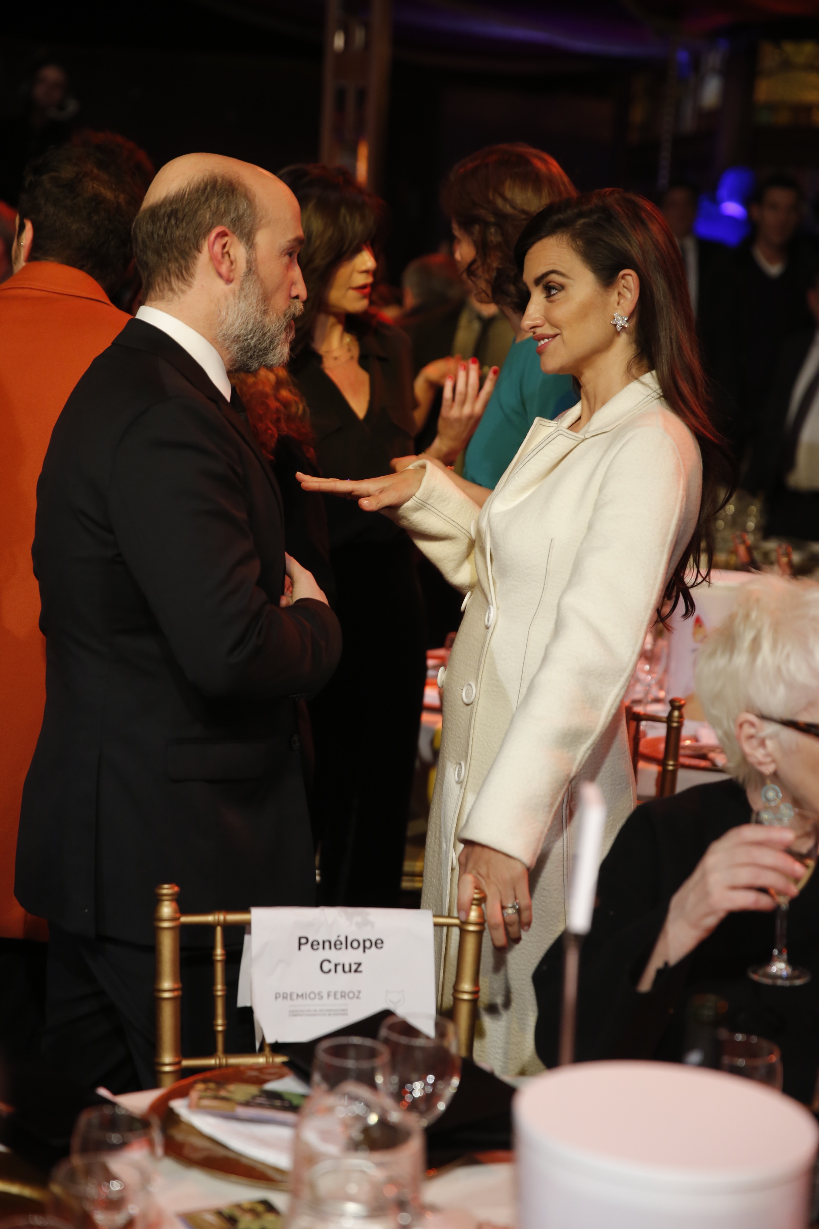 Penélope Cruz habla con el productor de cine Enrique Cerezo.