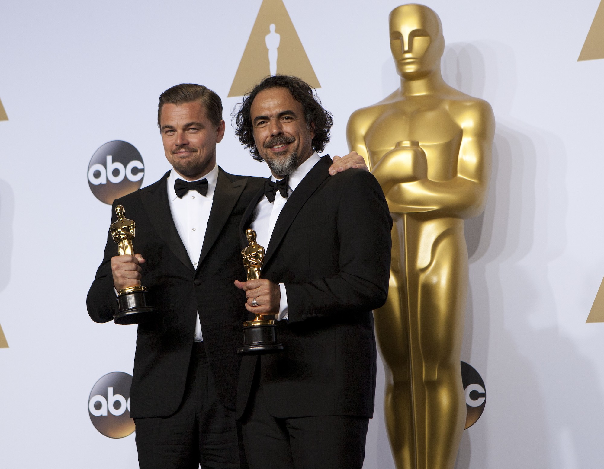 Iñárritu, Oscar a Mejor Director, posa junto al protagonista de su cinta El Renacido Leo DiCaprio