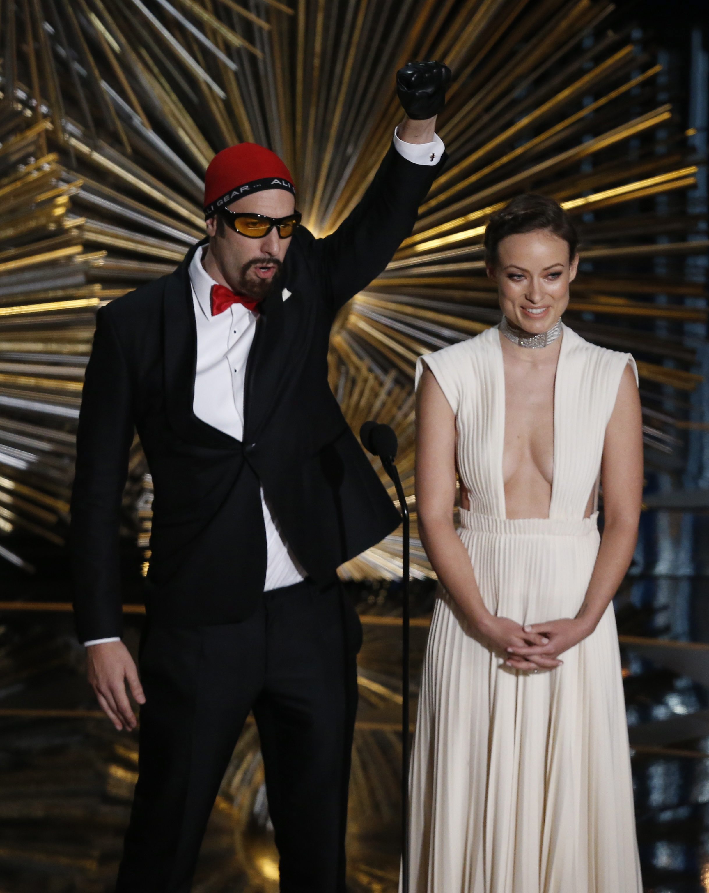 El cómico Sacha Baron Cohen era el encargado de presentar un premio junto a Olivia Wilde, pero nadie esperaba que lo hiciera caracterizado como Ali G... en un momento en el que el tema racial estaba, como saben, bastante encendido.