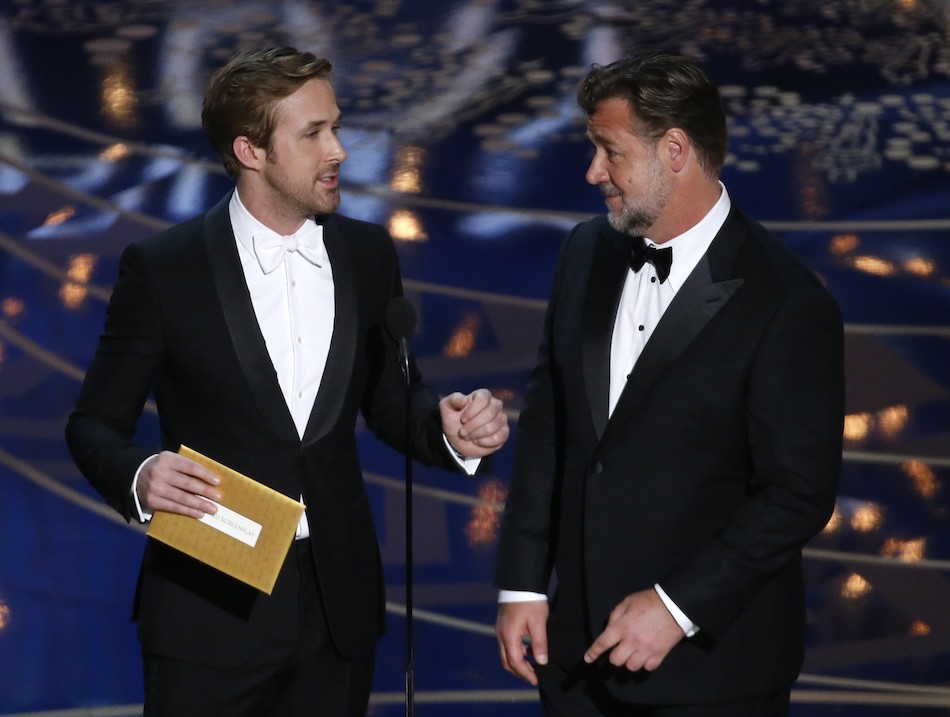 Russell Crowe y Ryan Gosling presentaron los premios a mejor guión original y adaptado y desplegaron toda su química cómica mientras estuvieron en el escenario. En el fondo, se trata de un tráiler de la película que la pareja estrenará este verano, Dos buenos tipos, en el que interpretan a dos detectives no muy bien avenidos.