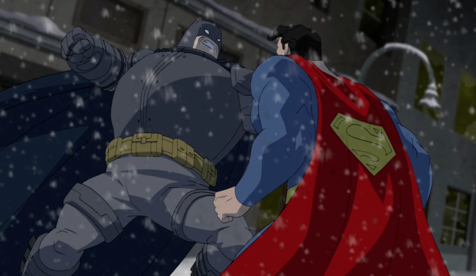 Quienes despotrican de las reciente Batman v. Superman quizá deberían echarle un vistazo -o a lo mejor lo han hecho, y por eso lo hacen- a la adaptación animada de una de las grandes obras de Miller. La película editada en dos partes en España narra el regreso de un Batman anciano en una Gotham decadente y ochentera y una Guerra Fría igual de grotesca y deforme que las anatomías de sus personajes. Y lo hace siguiendo bastante fielmente el libro original, una de las obras maestras del cómic de su década.