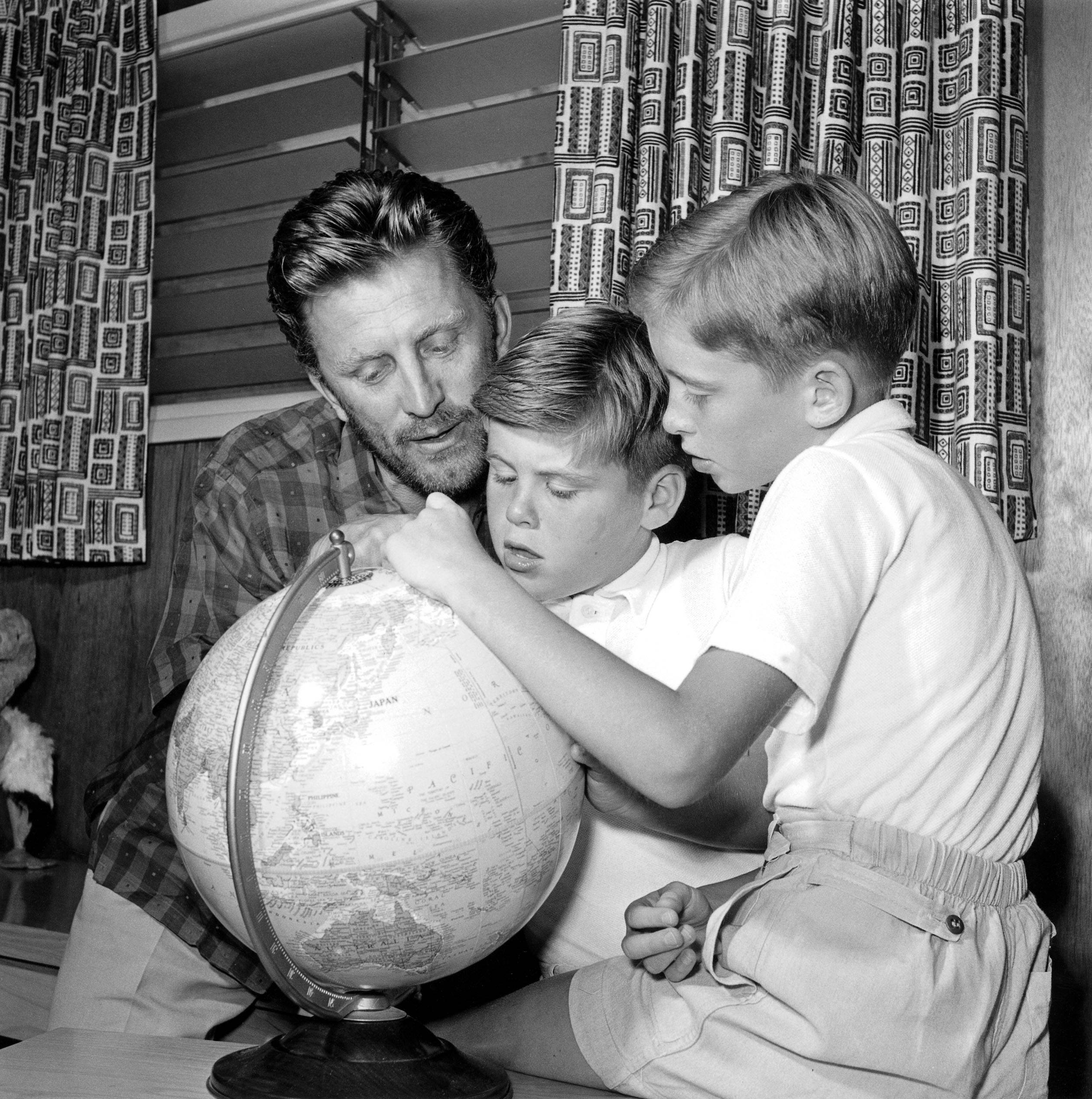 El actor contrajo matrimonio con Diana Dill y tuvo dos hijos: Michael y Joel. En esta imagen de 1954 se le ve junto a sus bástagos en su propia casa.