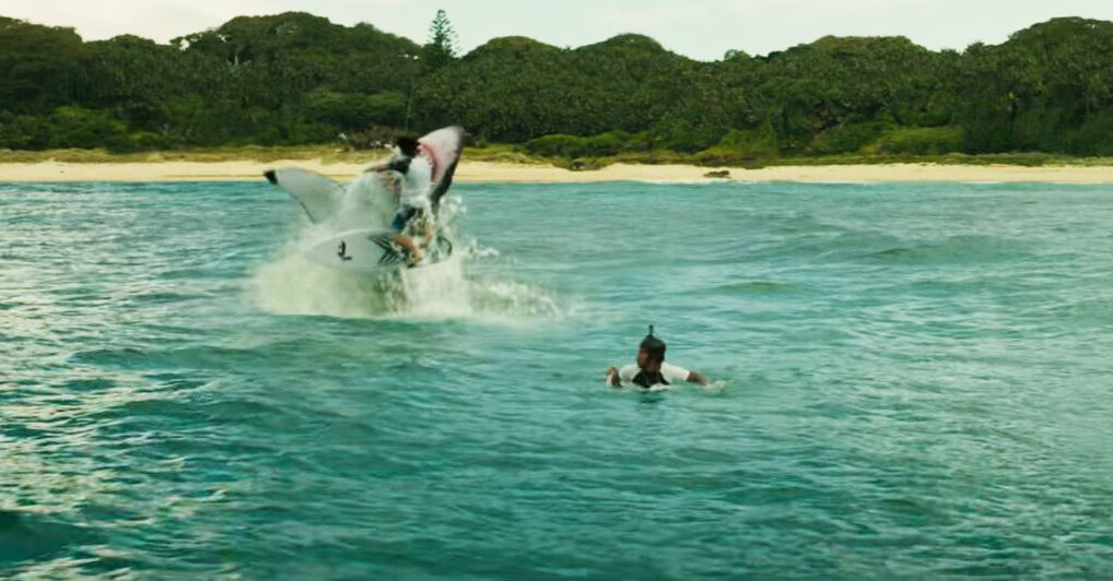 Para algunos como yo, Infierno Azul es sin duda uno de los mejores largometrajes del año. La dirigida por el catalán Jaume Collet-Serra es una de esas propuestas resumibles en una línea: bella contra bestia, o si quieren (y no creo que sea tema baladí) hembra contra hembra. Blake Lively es una surfera en crisis personal de vacaciones en un entorno idílico, pero que invade el territorio de un enorme tiburón (hembra, como ella) que, como nosotros, fija sus ojos en ella y solo en ella. Lo que sigue son minutos de acoso y derribo mutuo, la definición de historia de superviviencia y casi, casi, del cine en sí mismo: la puesta en escena del director es compacta, moderna e intensa, la interpretación de Blake Lively excelente y los efectos especiales cumplen en una escalada de tensión y espectáculo modesto (en los tiempos que corren) pero brutal. Los extras cumplen su cometido en una película de esas que reivindican la sinceridad y pureza del cine de género: destacamos el de "cómo construir un tiburón", sobre la construcción de un detallado escualo digital que brilla en secuencias como las finales, o en aquella que un servidor tiene grabado en la retina: esa súbita primera aparición, justo detrás de la protagonista, fuera del agua y sobre el mismísimo atolón.