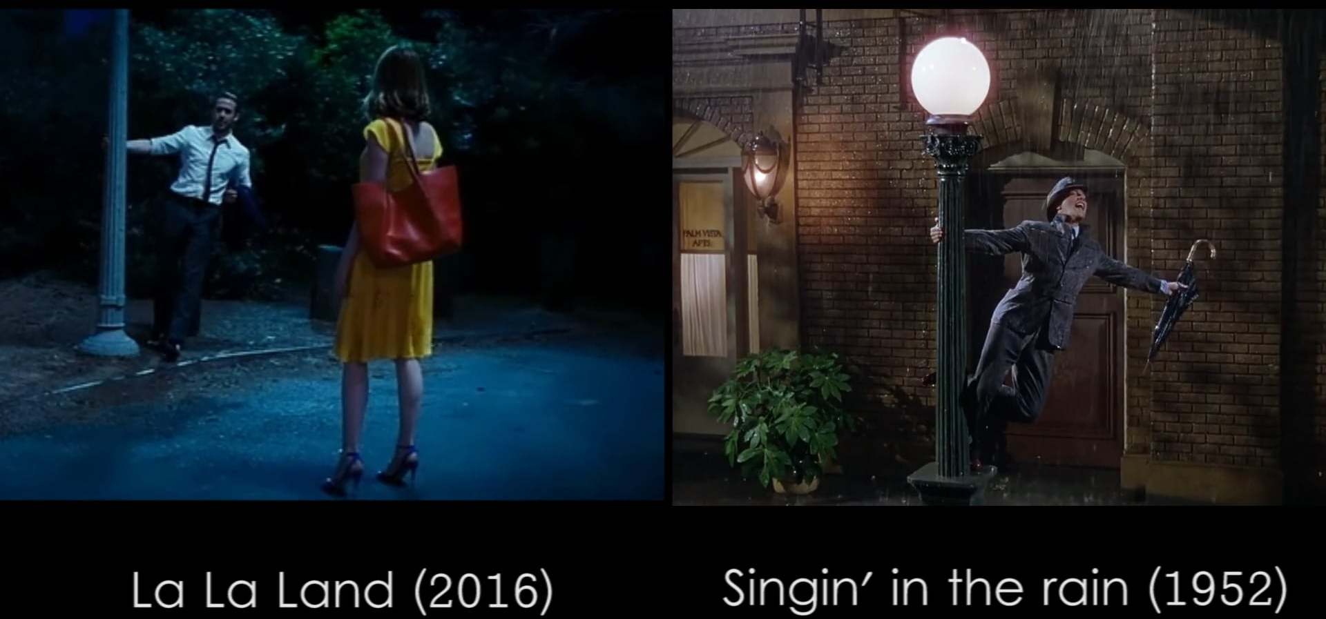Los clásicos rememorados son Las señoritas de Rochefort (1967), Grease (1978), West Side Story (1961), Noches en la ciudad (1969), Cantando bajo la lluvia (1952), Boogie Nights (1997), ¿Bailamos? (1937), Melodías de Broadway (1953), Moulin Rouge! (2001), Una cara con ángel (1957) Un americano en París (1951), El globo rojo (1956), Los paraguas de Cherburgo (1964), La nueva melodía de Broadway (1949) y Melodías de Broadway (1940).