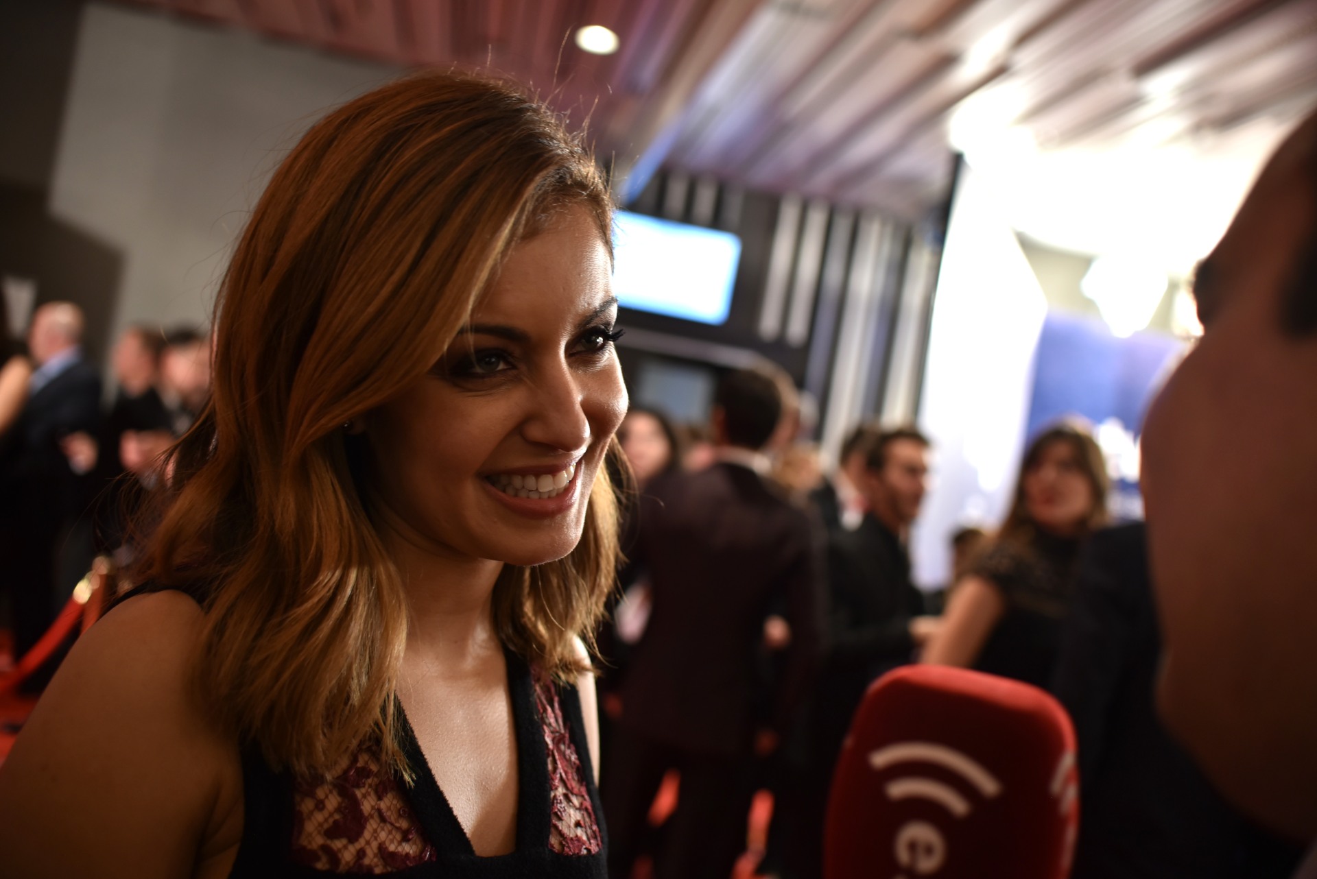 La joven actriz Natalia Sánchez espera su turno para entrar en el auditorio donde se celebra la gala.