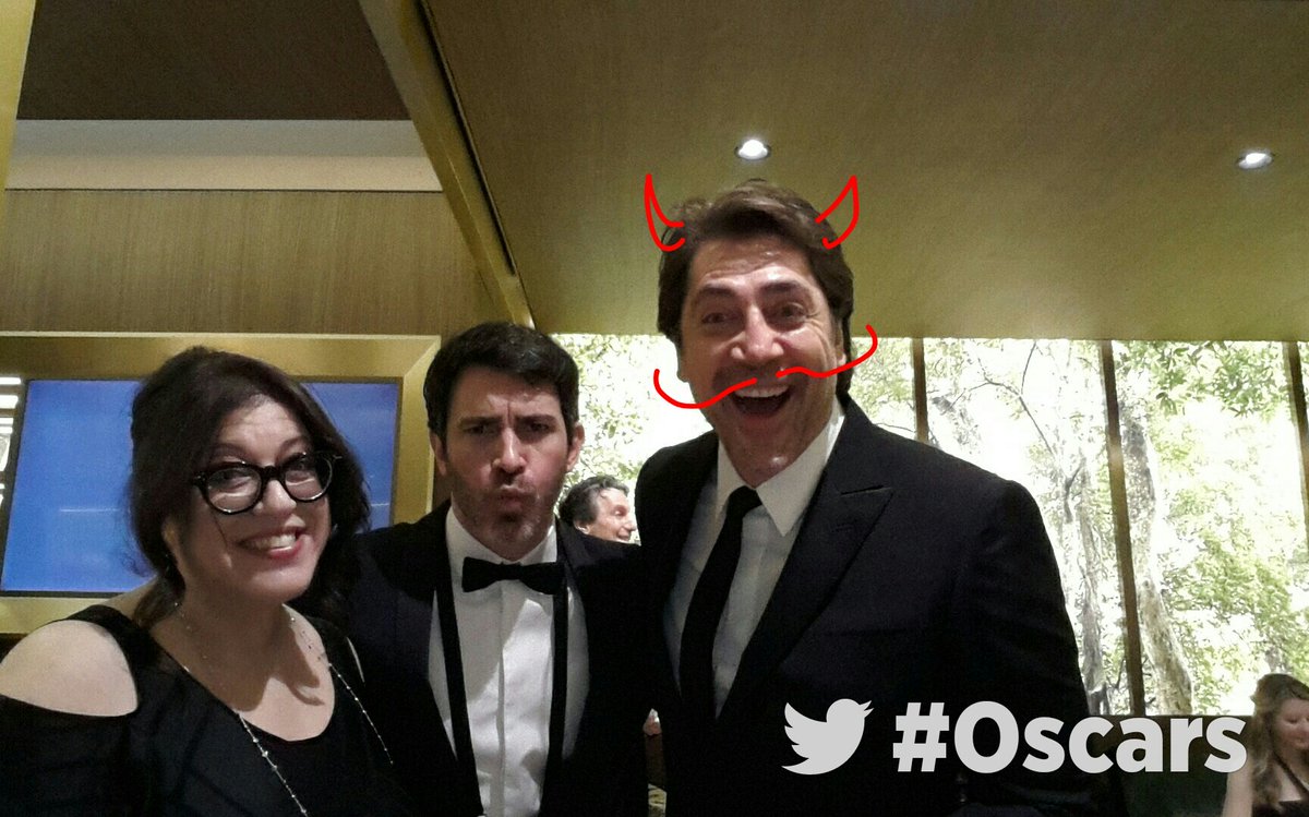 El actor Javier Bardem se pinta bigote y cuernos en el saludo por el Twitter oficial de la Academia de Hollywood.