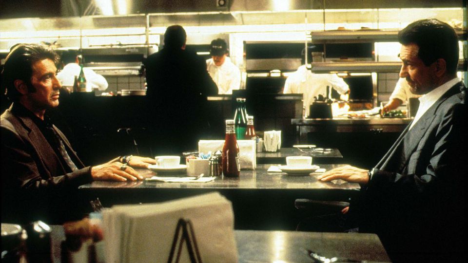 Una virtud muy difícil de encontrar y que subraya el carácter visionario del filme, meticuloso hasta la extenuación en su descripción del escenario físico y mental de sus dos protagonistas. Porque esto es un choque de trenes de puro espectáculo, el de dos hombres parecidos pero en lados opuestos de la ley, el policía Vincent Hannah (Pacino) y el ladrón de guante blanco Neil McQualey (De Niro). Las dos caras incompatibles de una misma moneda atraviesan dos momentos paradójicos: mientras el policía ve cómo su vida personal toca fondo, el delincuente encuentra una posible salida en el personaje de Amy Brenneman.