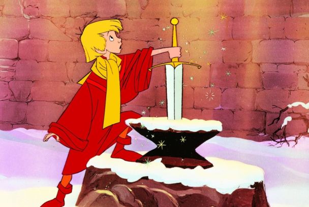 Quizás sea el rey Arturo más inocente y precoz. La versión animada de Disney se centra en las aventuras de este personaje antes de ser coronado y, sobre todo, en su relación con el mago Merlín.