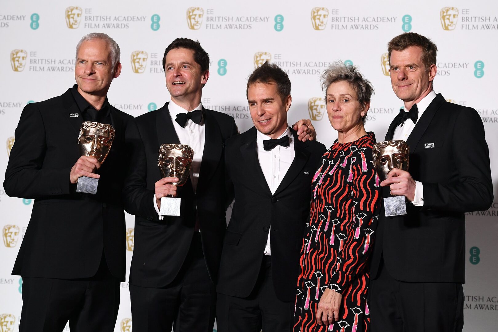 Mejor película, mejor actriz (Frances McDormand), mejor actor secundario (Sam Rockwell), mejor guion original y mejor película británica fueron las cinco categorías en las que se impuso Tres anuncios en las afueras, a la que siguió por número de premios La forma del agua, que se llevó tres, y El instante más oscuro y Blade Runner 2049, con dos cada uno.
