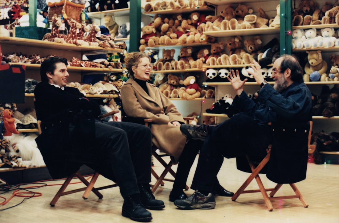 Kubrick conversa animadamente con Nicole Kidman y Tom Cruise durante un descanse en el rodaje de Eyes Wide Shut.