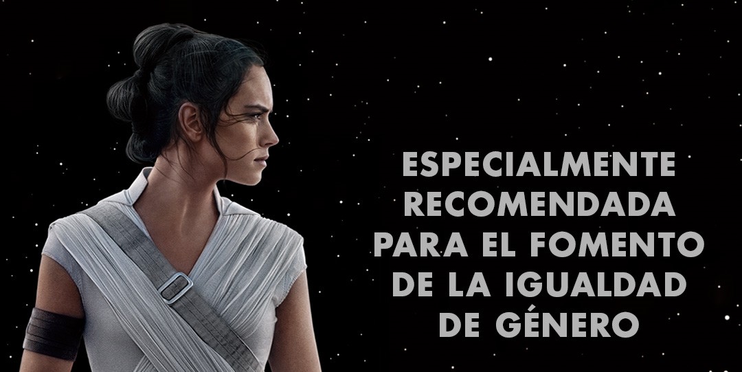 Este jueves llega a España Star Wars: El ascenso de Skywalker, el final de una saga que ha batido récord de preventa de entradas. La cuenta oficial de la película en Twitter lanzó el cartel de la cinta en la que se puede ver a Rey, su protagonista, junto con la frase "Especialmente recomendada para el fomento de la igualdad de género".