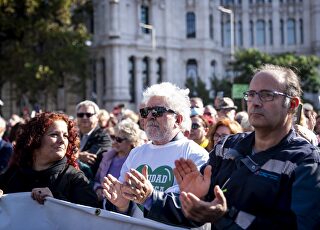 Yolanda Díaz asentía desde su mesa cuando cerraba la perorata: "Los problemas sanitarios nos afectan a todos, aunque algunos tengamos la posibilidad de ir a la sanidad privada", asumía Almodóvar, que se operó en el año 2014 de una hernia en el Hospital Ruber Internacional y posteriormente fue al mismo centro a tratarse una tendinitis.