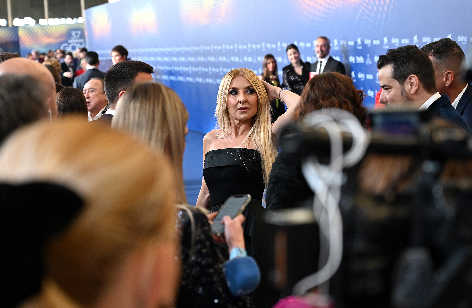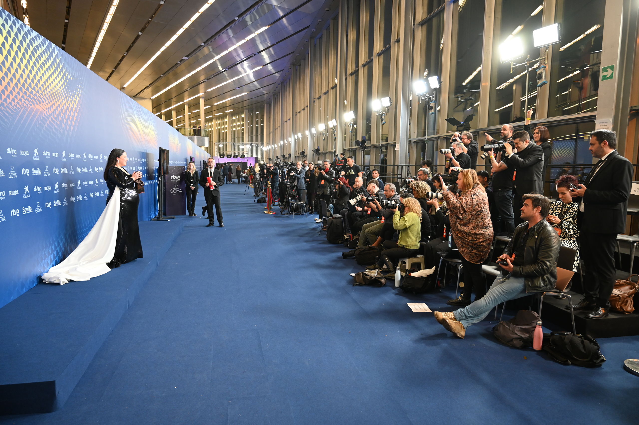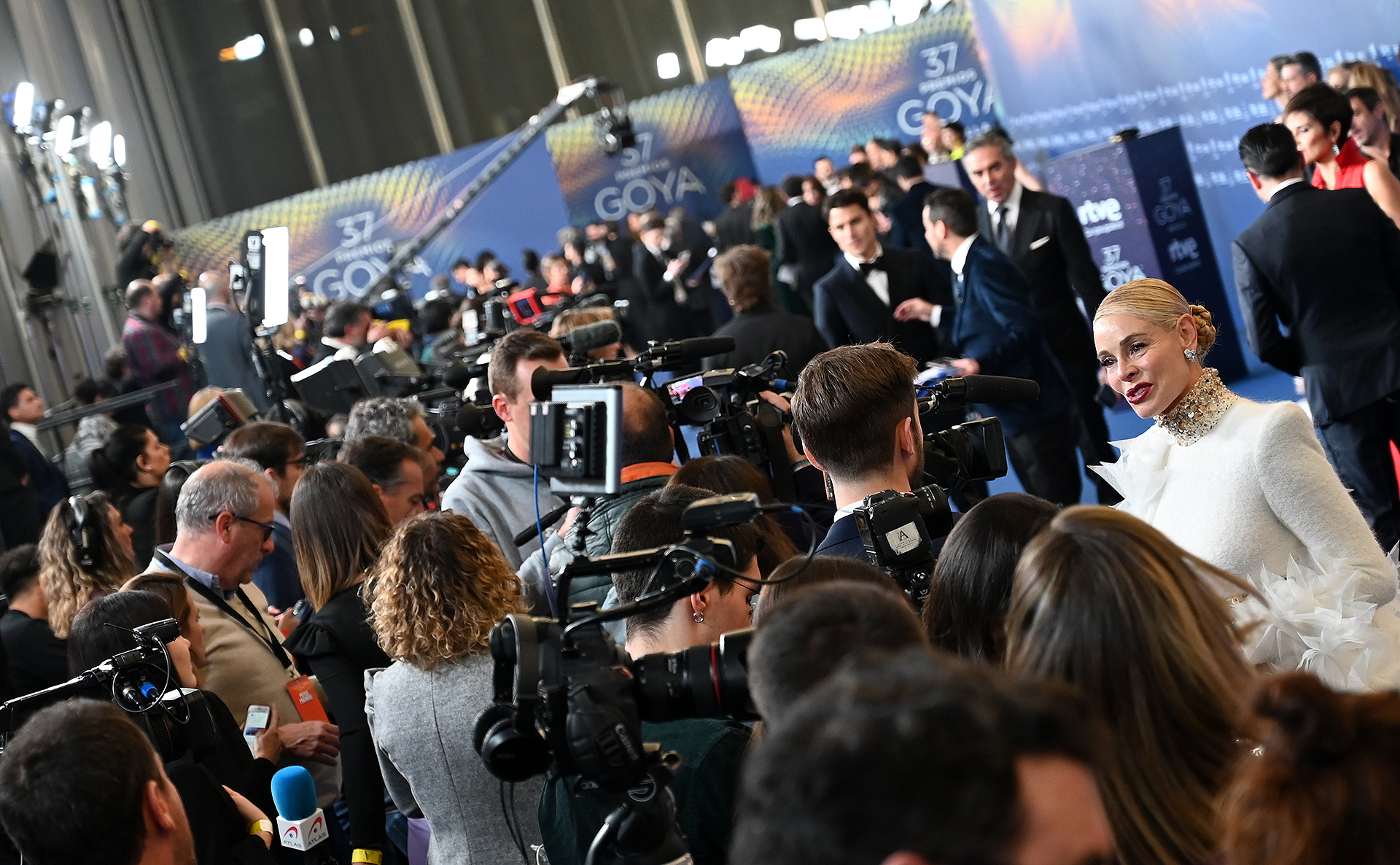 La vorágine de la alfombra roja de los Goya. Por un lado la prensa y por otro las estrellas. Belén Rueda en primer plano.