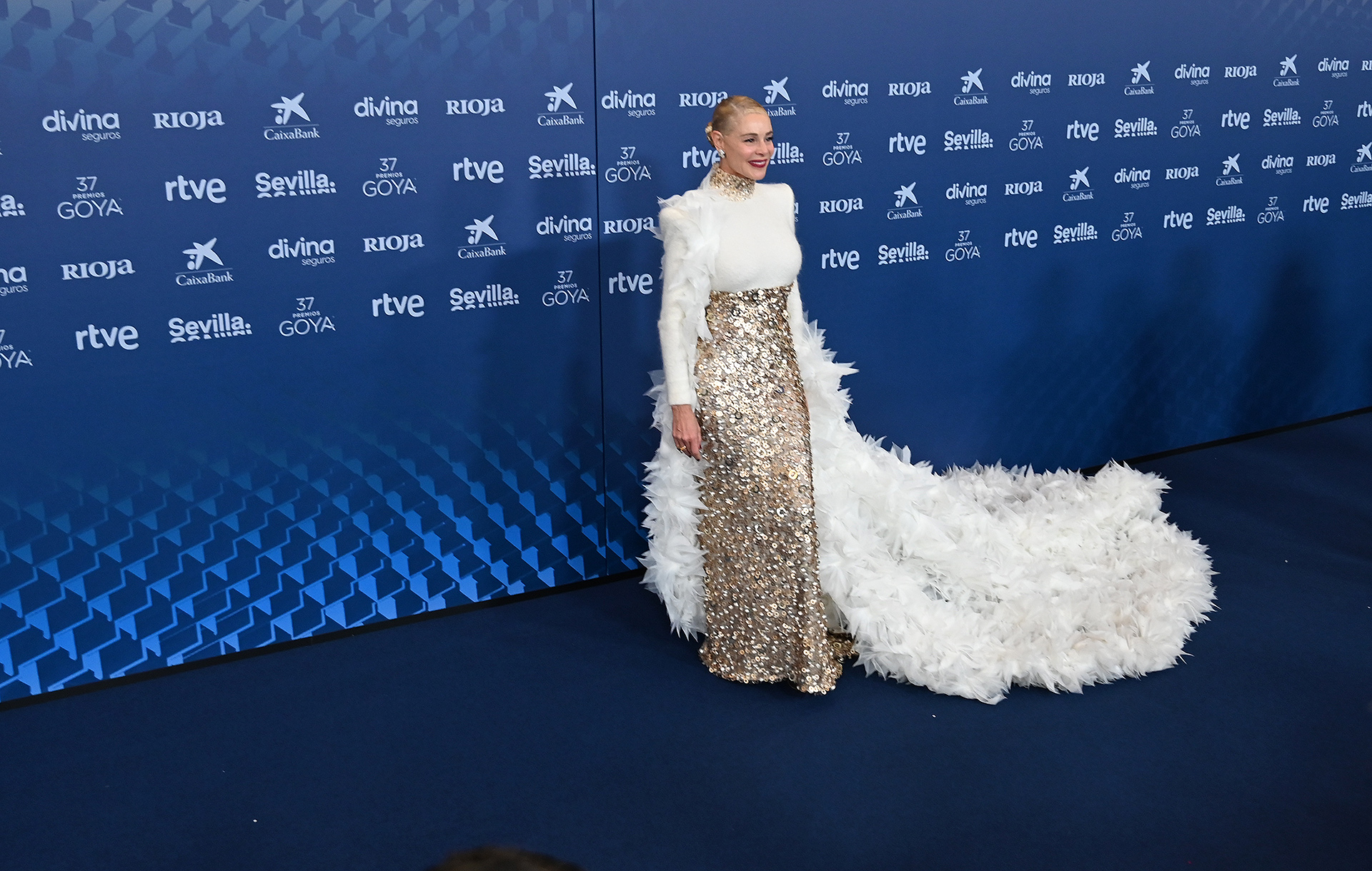 Belén Rueda, posando con uno de los vestidos más impresionantes de toda la alfombra.