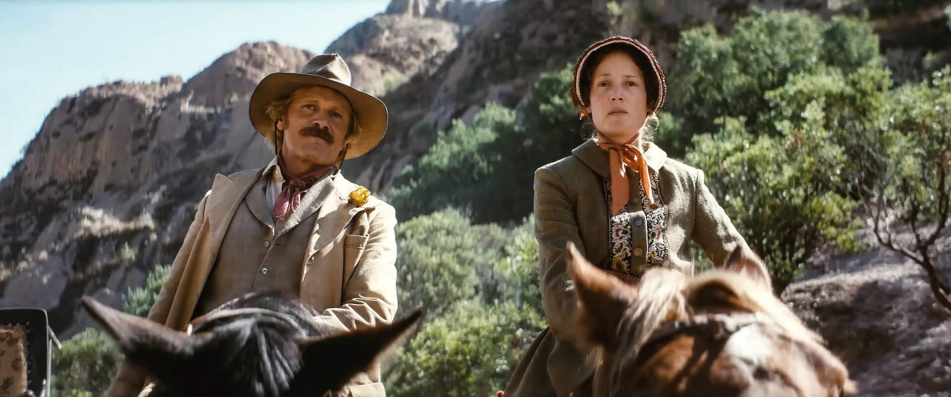 El western Hasta el fin del mundo, segunda película dirigida por Viggo Mortensen (también actor y guionista) es un poco como su protagonista femenina, Vivienne, interpretada por Vicky Krieps. No es del todo, en cuanto a espíritu, una película europea. Pero desde luego, tampoco es una del todo americana, pese al género al que claramente se adscribe. Drama romántico en el Oeste, Mortensen cuenta la historia de una pareja como una triste y verosímil historia de amor entre inmigrantes en plena fundación del país. A la vez, la película -fuertemente inspirada en la historia real de los padres de Mortensen en Argentina- va recorriendo todos los lugares comunes y tópicos del relato fronterizo, solo que con un marcado acento a... ¿Los puentes de Madison?