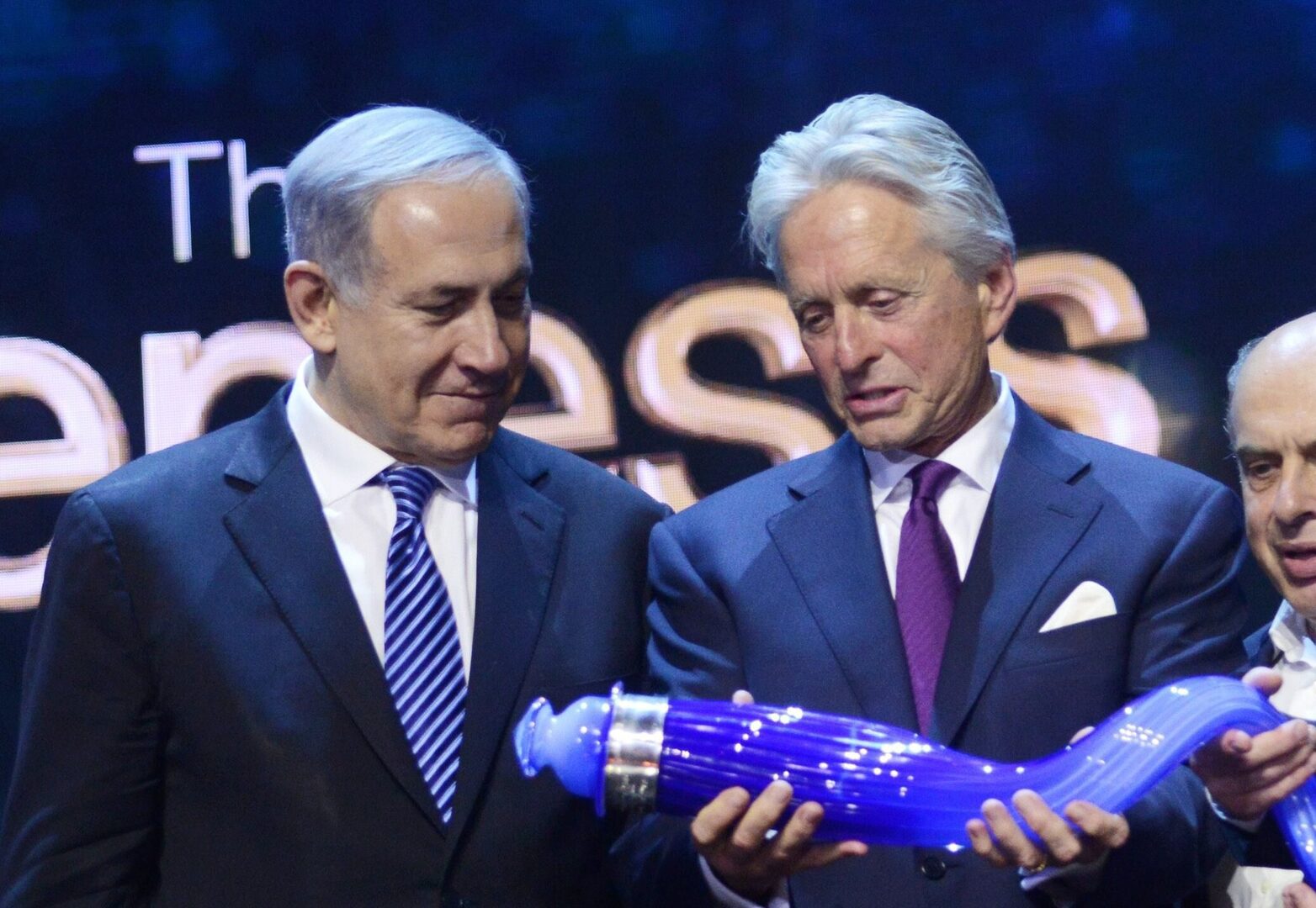 El periódico The Times of Israel ha asegurado que el actor, que viajó a Israel para reunirse con el presidente Isaac Herzog, explica que éste ha regalado a Douglas un pin amarillo como símbolo de los rehene, así como una chapa con la inscripción "Nuestro corazón está cautivo en Gaza".