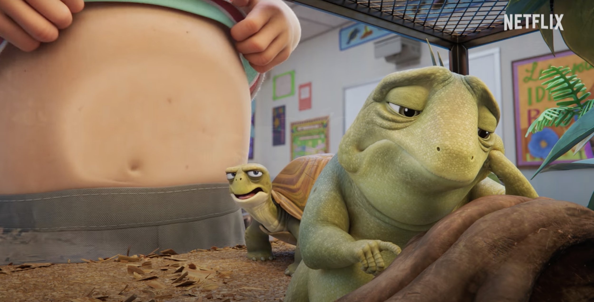Pero Leo, en la que un reptil en cautividad decide escapar cuando descubre que le queda solo un año de vida, desafía expectativas ya desde su estructura narrativa, más aparentemente cercana al dibujo libre (el film es extraordinariamente coral, lo que ayuda a frenar el sentimentalismo) al tiempo que bien pautado. El personaje, diseñado para que Sandler pueda aportar su registro campechano más exagerado, ejerce de "cicerone" para un grupo de niños de primaria a través de una serie de bizarros diálogos que eluden la lágrima fácil y revelan nuevas visiones de la realidad para los pequeños.