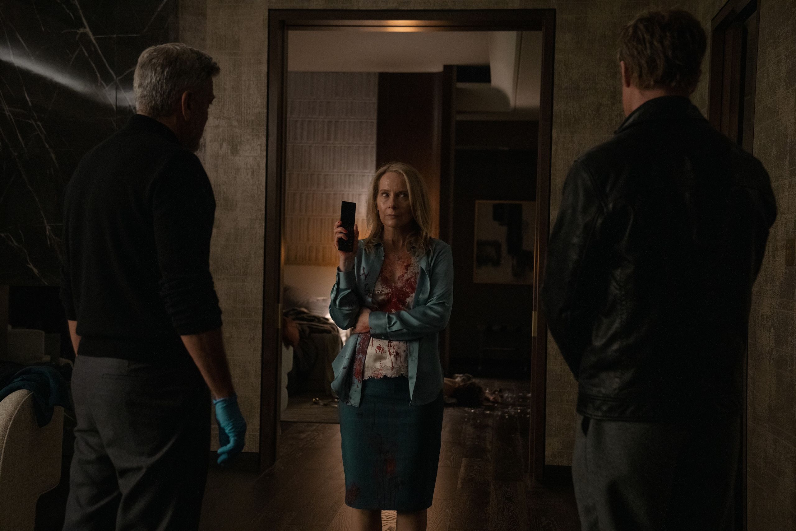 Jon Watts, responsable de la trilogía del Spider-Man de Tom Holland, dirige Wolfs, la historia de dos lobos solitarios, dos "solucionadores" de las cosas más turbias, como limpiar la escena de un crimen deshaciéndose de un cadáver inoportuno. La película comienza con una mujer de mediana edad desesperada en una suite de un hotel de lujo, el joven que la acompañaba está muerto en el suelo. Llama a un número de teléfono sin un nombre asignado.