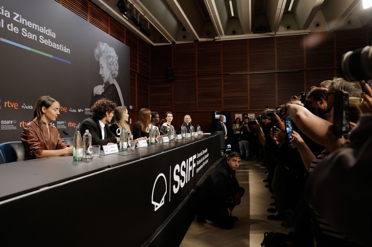 La sala de prensa ya presentaba un lleno absoluto 30 minutos antes de la llegada de la actriz, con los fotógrafos apostados delante de la mesa para sacar la mejor instantánea. Entre aplausos entró el equipo al completo: la directora Alice Winocour, Angelina Jolie, Louis Garrel, Ella Rumpf, Garance Marillier y Anyier Anei.