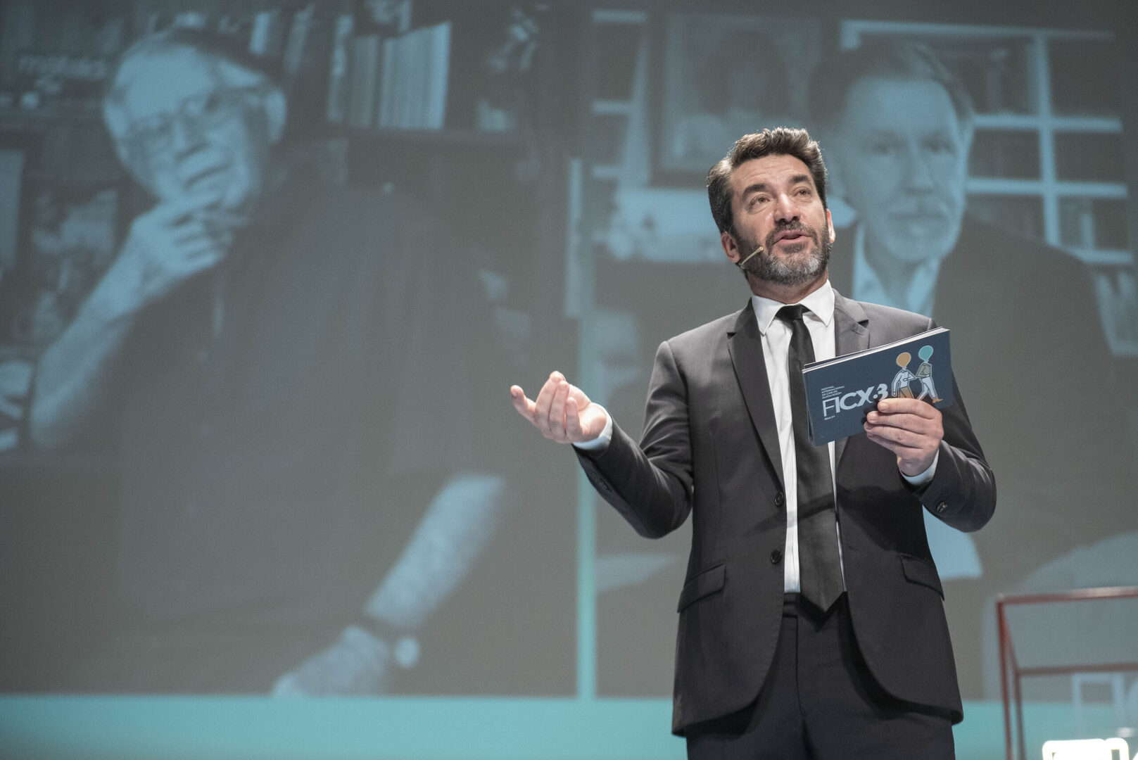 Frente a una máquina de café charlaban animadamente. Santiago Alverú comentaba que tiene a Guillermo del Toro todo el día llamándole para trabajar con él. Arturo Valls bromeaba con que a él le persiguen los Javis, de los que es muy amigo: "bueno, ahora me tendrán que llamar por separado" provocó la primera carcajada generalizada en todo el teatro. Continuaba haciendo chistes sobre Glenn Close, "que es muy cercana", que precisamente ha participado en la última película de los Javis. Una pulla a Oviedo para regocijo de los gijonenses y ya tenía al público en el bolsillo.
