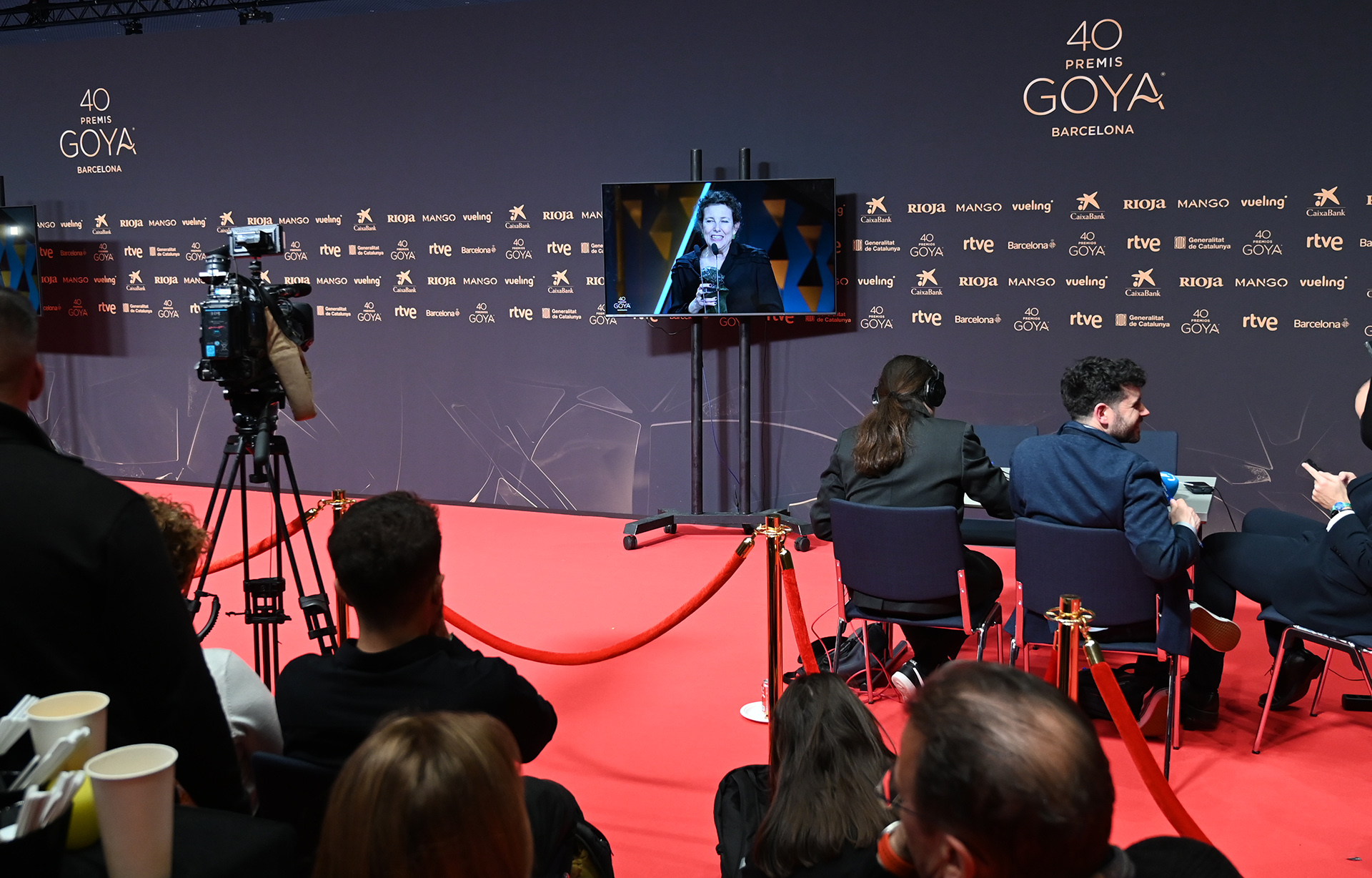 Decenas de medios de comunicación se dieron cita, como todos los años, para cubrir la Gala de los Premios Goya. Casi todos pudieron ver la gala desde la propia alfombra roja a través de una televisión.