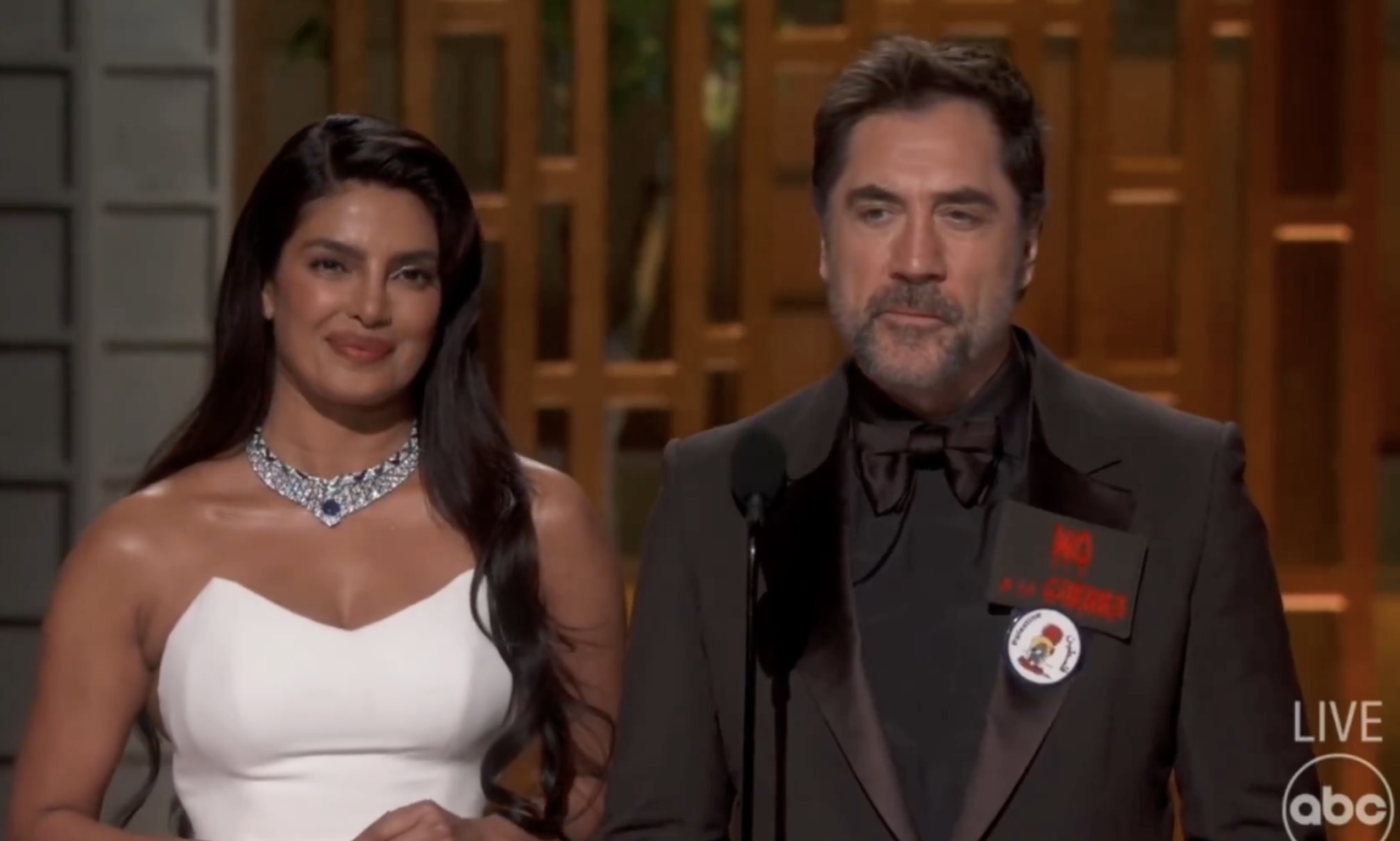Finalmente, la afirmación de Bardem se limitó a un breve pero contundente "No a la guerra y Palestina libre", dejando espacio a su compañera Priyanka Chopra Jonas para anunciar la Mejor Película Internacional (que fue para la noruega Valor sentimental y no para la española Sirat).