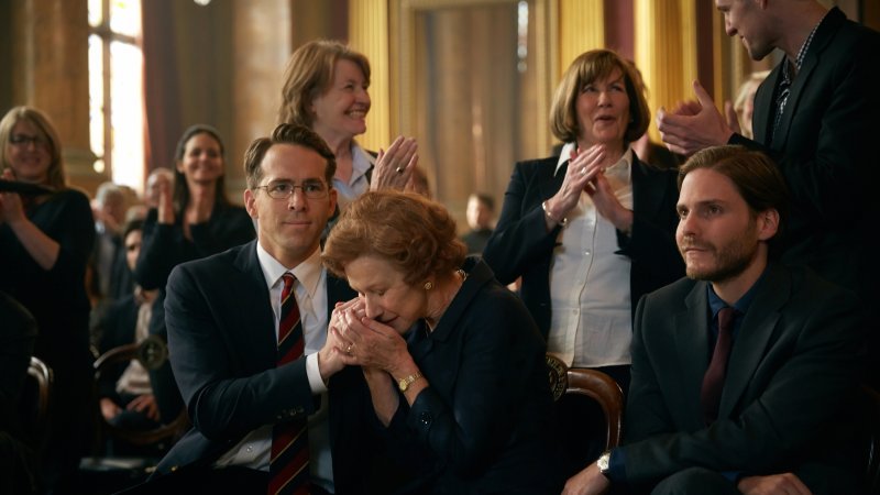 - Daniel Brühl, Ryan Reinolds y Helen Mirren
