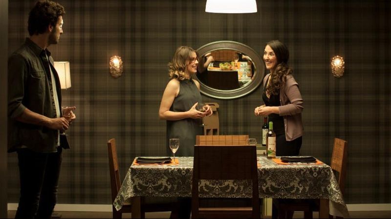 Dos amigas, Lidia (Betsy Túrnez) y Sandra (Ruth Llopis), que llevan mucho tiempo sin verse deciden organizar una cena de parejas para así conocer a sus respectivos novios: David (Alain Hernández), un policía antidisturbios, e Ignasi (Miki Esparbé), un documentalista social que perdió un ojo por culpa de una bola de goma que le golpeó en una manifestación. Todo ello amenizado por los discursos que un político (Xesc Cabot) da desde la televisión. Cuatro personajes que quedan para cenar, recordar viejos tiempos y ponerse al día... sin saber que David dejó tuerto a Ignasi.