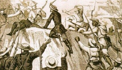 "Construyendo baterías, removiendo tierra, y perdiendo por el clima y lo duro de los trabajos cuatro veces más soldados de lo que se hubiesen sacrificado en la toma de Hué" (capital del imperio).