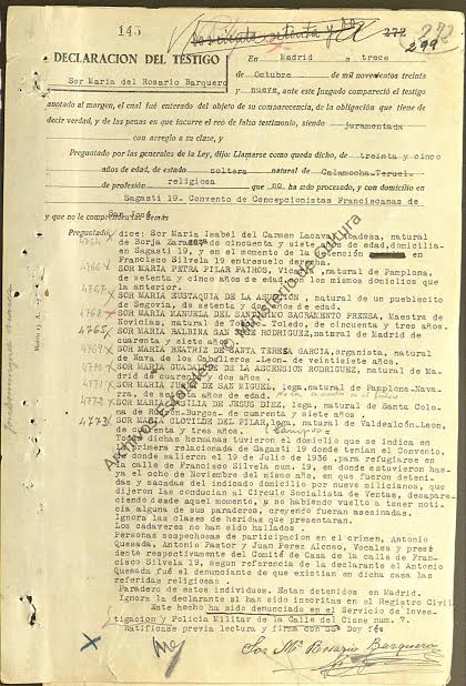 El 19 de julio de 1936, las 15 monjas de la comunidad dejaron su convento y se trasladaron a un cercano piso en la calle de Francisco Silvela número 19 que era propiedad de unos benefactores de la orden.