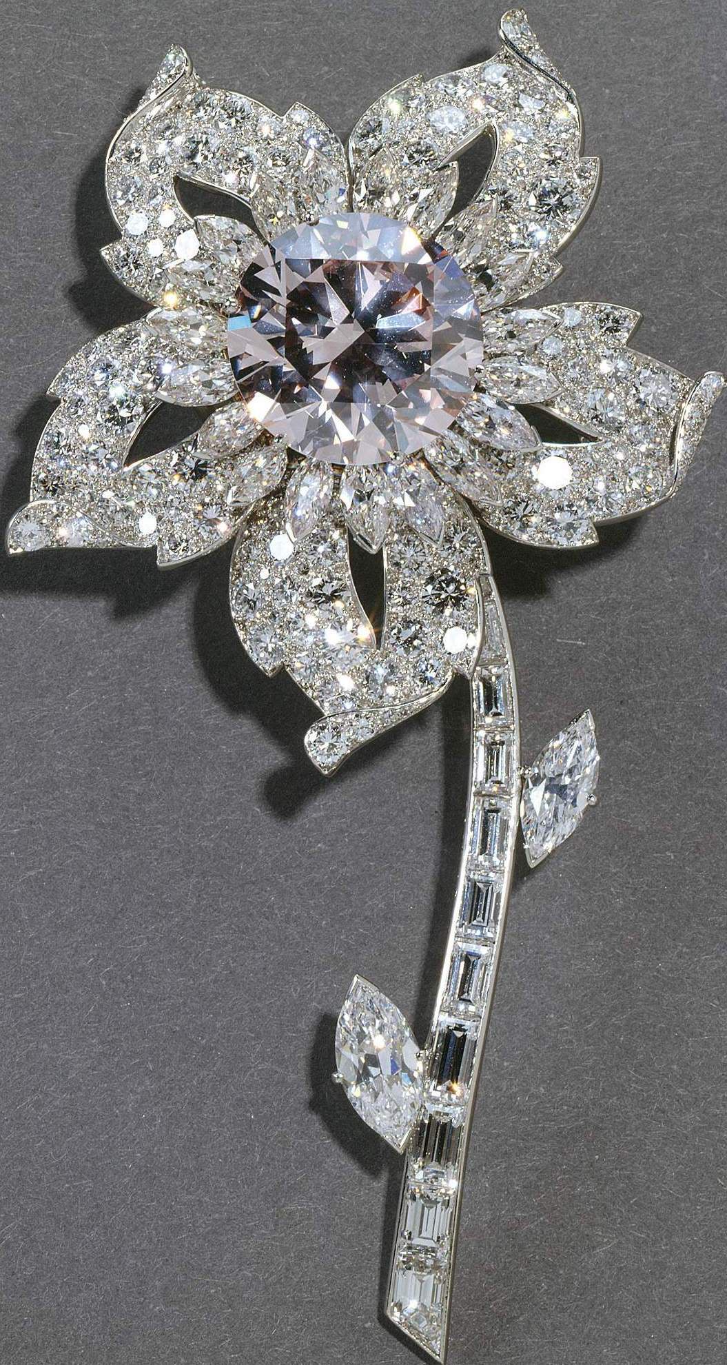 El diamante de color rosa de 23 quilates del centro de este broche fue un regalo de boda a la reina Isabel del geólogo canadiense John Williamson. Más tarde, en 1953, fue convertida en un broche con forma de flor por Cartier.