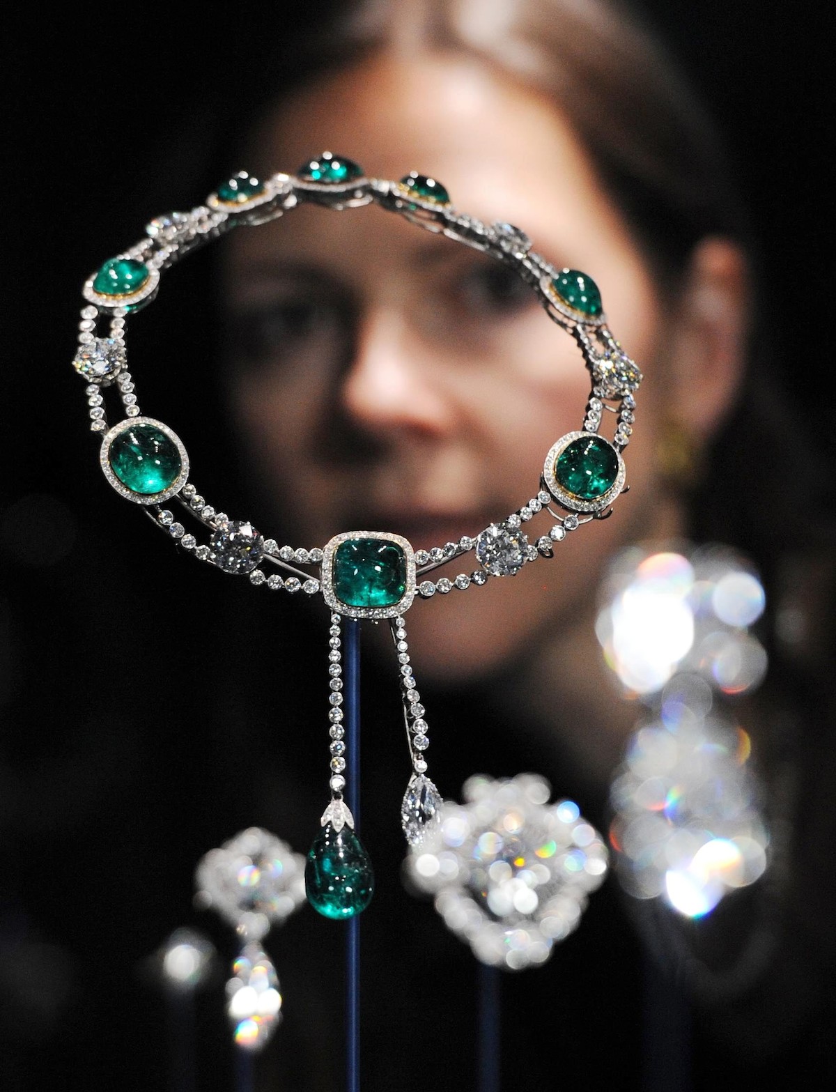 Collar y colgante Delhi Durbar, formado por diamantes y esmeraldas, creadas en 1911 y propiedad de la reina María.