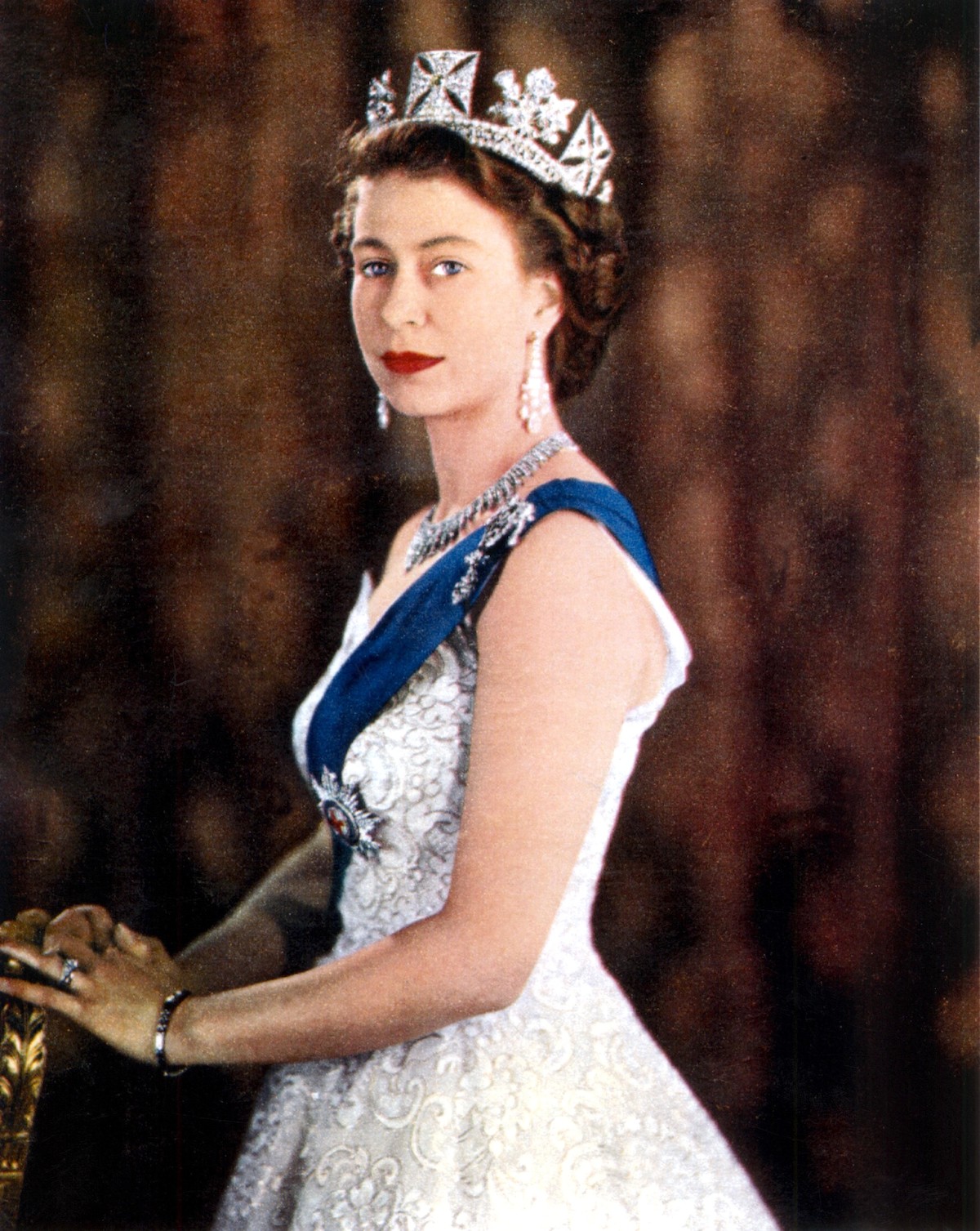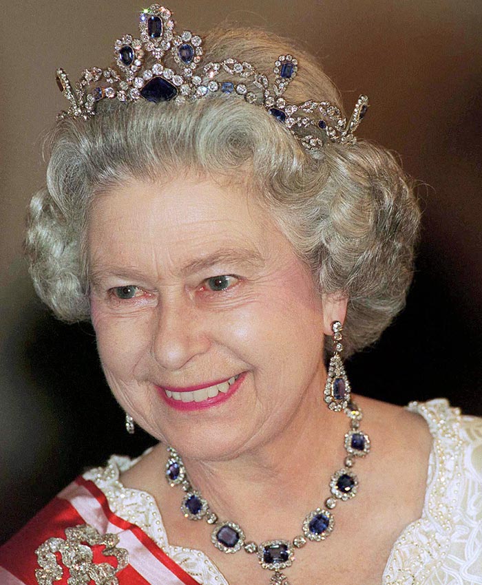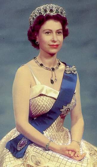 Isabel II lució el día de su coronación la Corona Imperial de Estado, valorada en 300 millones de euros. Se trata de un círculo calado con cuatro flores de lis y cuatro cruces patadas, de las que parte un arco con diseño de hojas de roble y bellotas. Cuenta además con perlas en forma de lágrima y una esfera de diamantes sobre la que se sitúa una cruz de diamantes. En resumen, son 2.868 diamantes, 273 perlas, 17 zafiros, 11 esmeraldas y 5 rubíes.