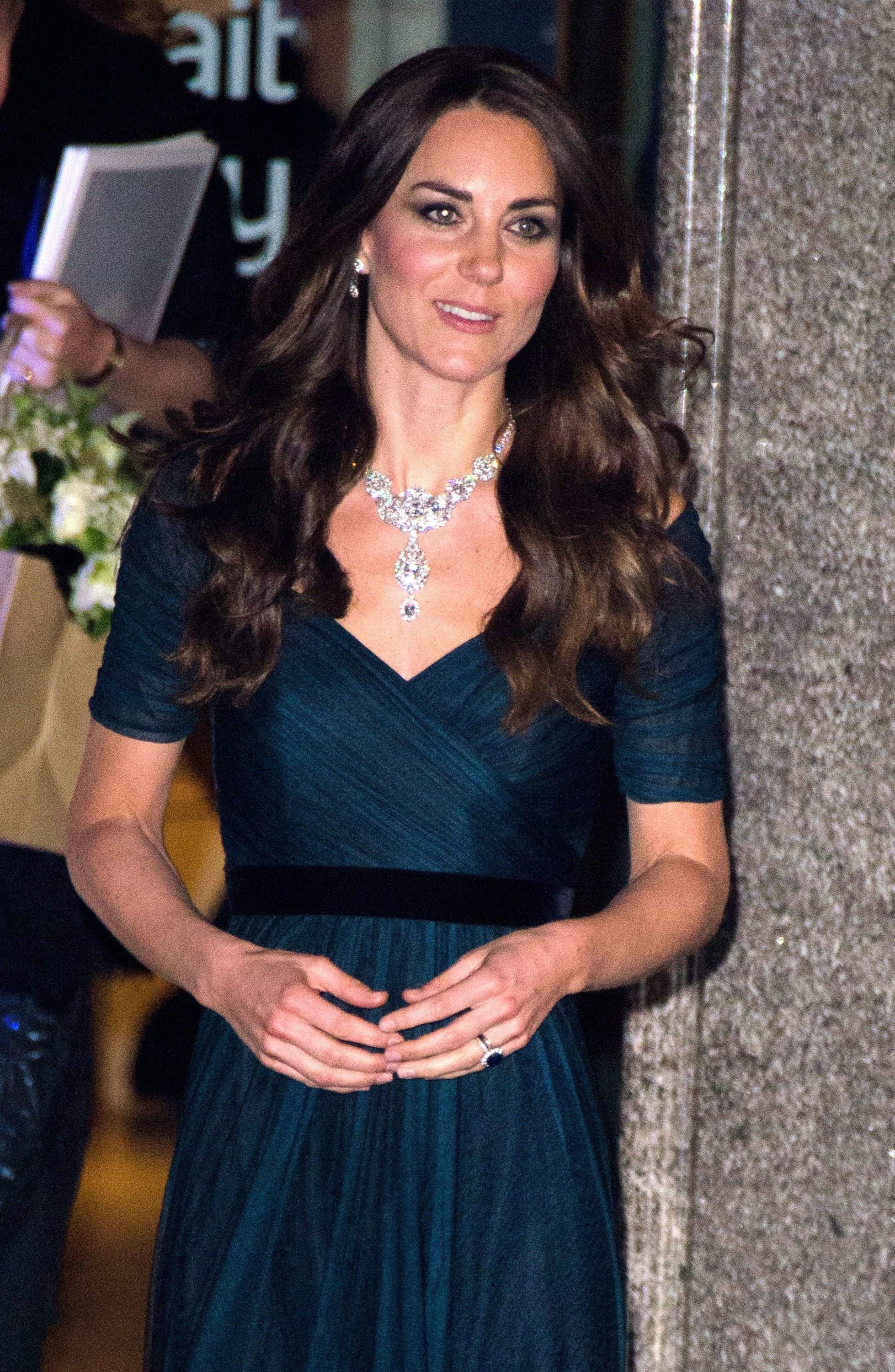Isabel II presta sus joyas a las nuevas incorporaciones de la familia, como es el caso de Kate Middleton. La duquesa de Cambridge lució un impresionante collar de diamantes en la National Portrait Gallery de Londres. La joya es un regalo que la reina Isabel II recibió en su boda en 1947.
