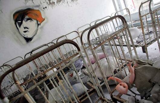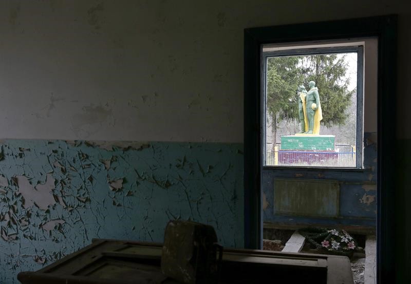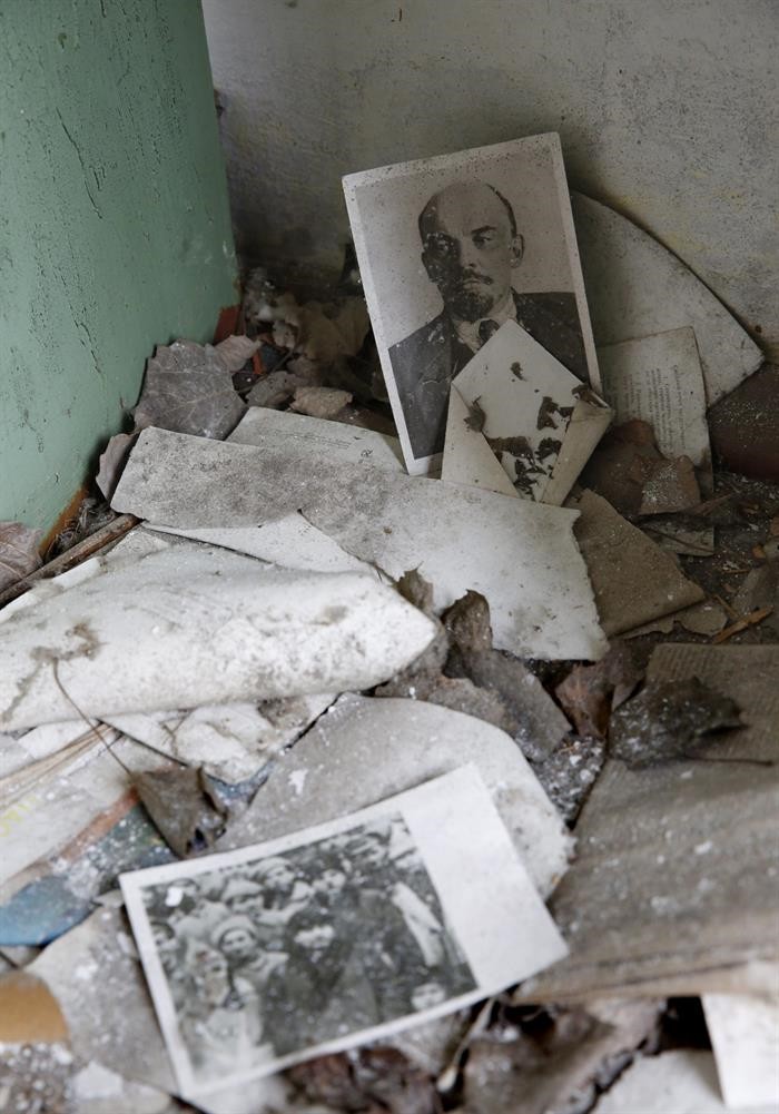 Entre los edificios que tuvieron que abandonar a toda prisa sus habitantes quedan imágenes y propaganda de la extinta URSS, responsable de la tardanza en que la noticia se conociera y de una evacuación tardía que en muchos casos incrementó los efectos de la radiación.