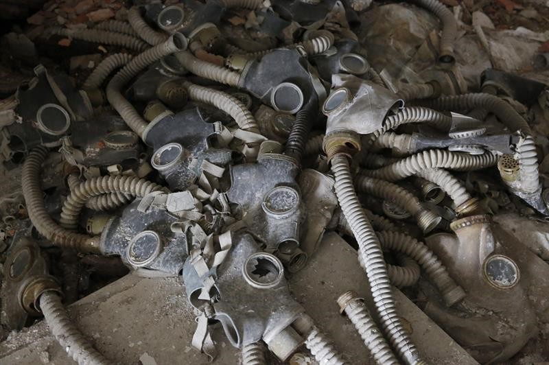 Máscaras de gas olvidadas en una escuela abandonada en la ciudad desierta de Orevichi. En las primeras horas, los habitantes sólo fueron avisados de un incidente en la central. Algunos niños trataron incluso de acudir a la escuela. Después, llegarían las máscaras y la orden de evacuación.