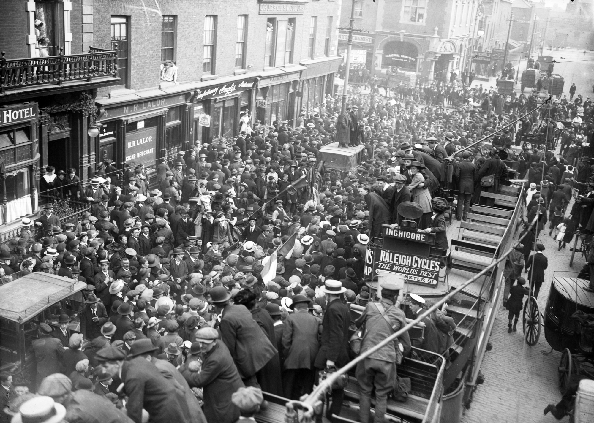 En plena Guerra Mundial la Hermandad Republicana Irlandesa (dirigida por Patrick Pearse, Tom Clarke y Eamon de Valera) intentó llevar a cabo una sublevación nacional. Su brazo armado eran los Voluntarios Irlandeses (unos 16.000 efectivos) equipados con armamento alemán introducido de contrabando por el puerto de Howth (Dublín) el 26 de julio de 1914 por Roger Casement, que desde Nueva York y Berlín había estado preparando la sublevación; pero tres días antes del alzamiento Casement (que acababa de ser desembarcado por un submarino alemán), fue detenido en el Dingle (Kerry), con lo que, descubierta la conjura, el alzamiento se redujo a Dublín. El 24 de abril de 1916, Lunes de Pascua, ahora hace 100 años, unos 1.200 revolucionarios tomaron la Oficina Principal de Correos, el Ayuntamiento y los Tribunales (the Four Courts), entre otros puntos de la ciudad y proclamaron un Gobierno Irlandés provisional. Pero fracasaron ante el Castillo (sede del Gobierno) y ante el Trinity College, y no aseguraron ni las dos estaciones de ferrocarril (Connolly y Heuston) ni el cercano puerto de Kingstown, por donde en los próximos días entrarían los refuerzos gubernamentales. Tropas de la guarnición (el Royal Irish Regiment) y la Policía (Royal Irish Constabulary) se enfrentaron a los sublevados y, después de cinco días de feroces combates callejeros y de bombardeos artilleros, Pearse, Clarke, De Valera y los demás supervivientes se rindieron.