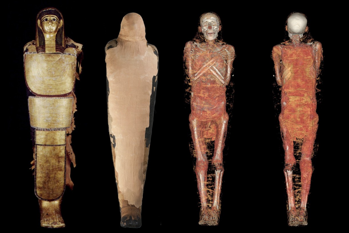 Dos de las momias seleccionadas pertenecen al periodo ptolemaico (332 a. C – 30 a. C). La primera de ellas corresponde Nespamedu, sacerdote de Imhotep el Grande, y procede de la necrópolis de Saqqara (Menfis). La segunda pertenece a una mujer adulta. La tercera se ha identificado hasta ahora como una mujer joven, que vivió durante el Tercer Periodo Intermedio (845 a. C – 664 a. C).
