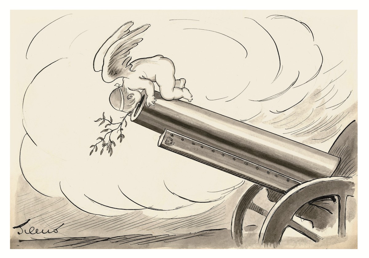 La guerra es cruda desde todos los ángulos, pero puede presentarse ante el lejano espectador como una fotografía impactante de soldados a punto de morir en trincheras o con la instantánea inmóvil y apabullante de cascos destrozados por el impacto de las balas. Él no contaba el conflicto así. No había sangre ni muertos. Resaltaba algo tan inmensamente difícil como su crueldad y desasosiego desde la ironía y el humor. Pedro Antonio Villahermosa y Borao (Zaragoza, 1869–Madrid, 1945) fue uno de los principales caricaturistas de carácter político en España, conocido bajo el seudónimo de Sileno. Durante la I Guerra Mundial, fue explicando a los españoles los acontecimientos que resquebrajaban Europa y lo hacia en forma de chiste. Excelente ilustrador de textos humorísticos y cuadros costumbristas, su trayectoria continuó hasta el comienzo de la Guerra Civil española.