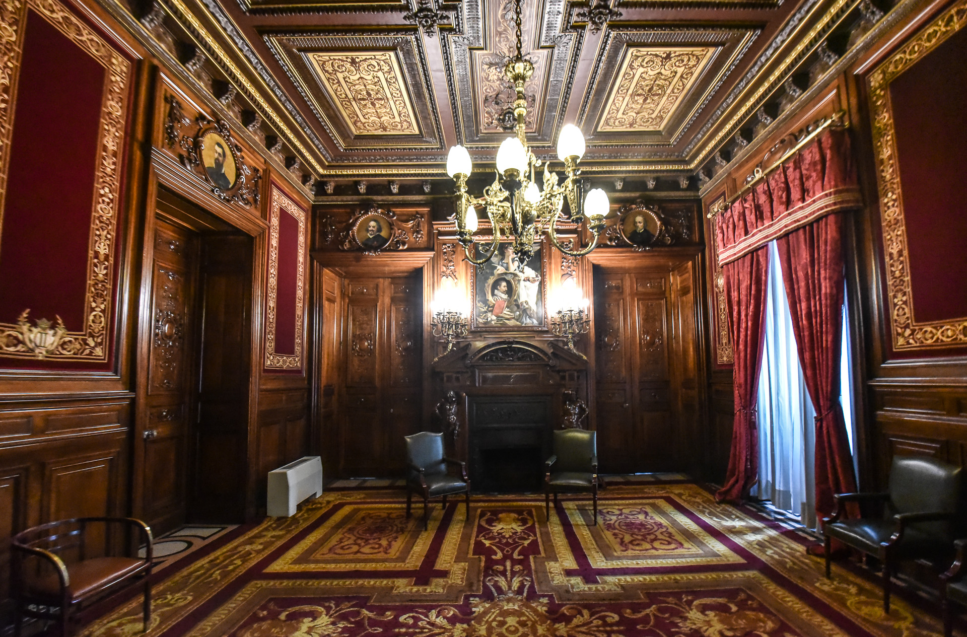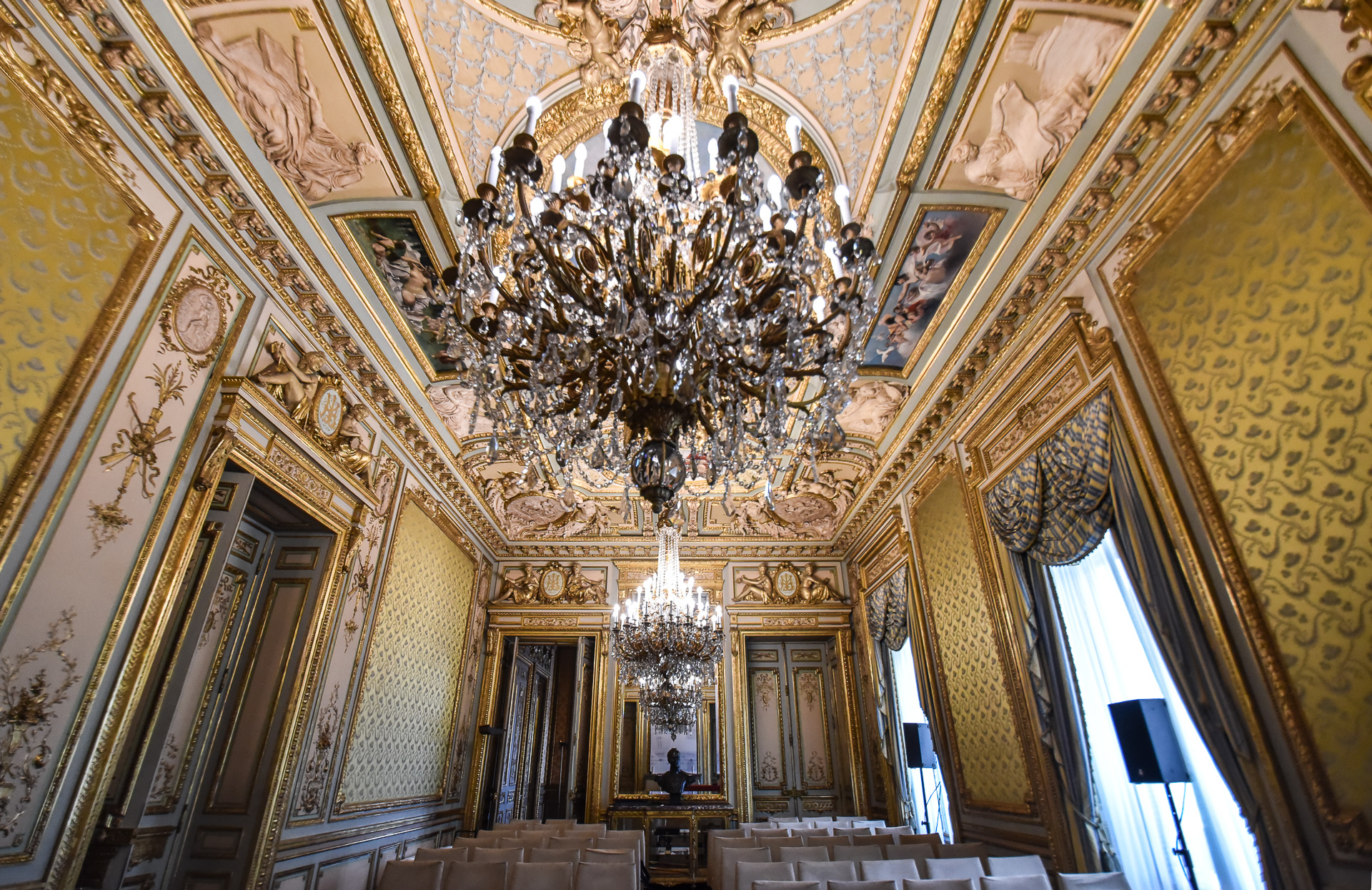 La Sala Simón Bolivar impresiona por sus tapices de la Fábrica de Gobelinos o su techo decorados con abundantes dorados y pinturas..